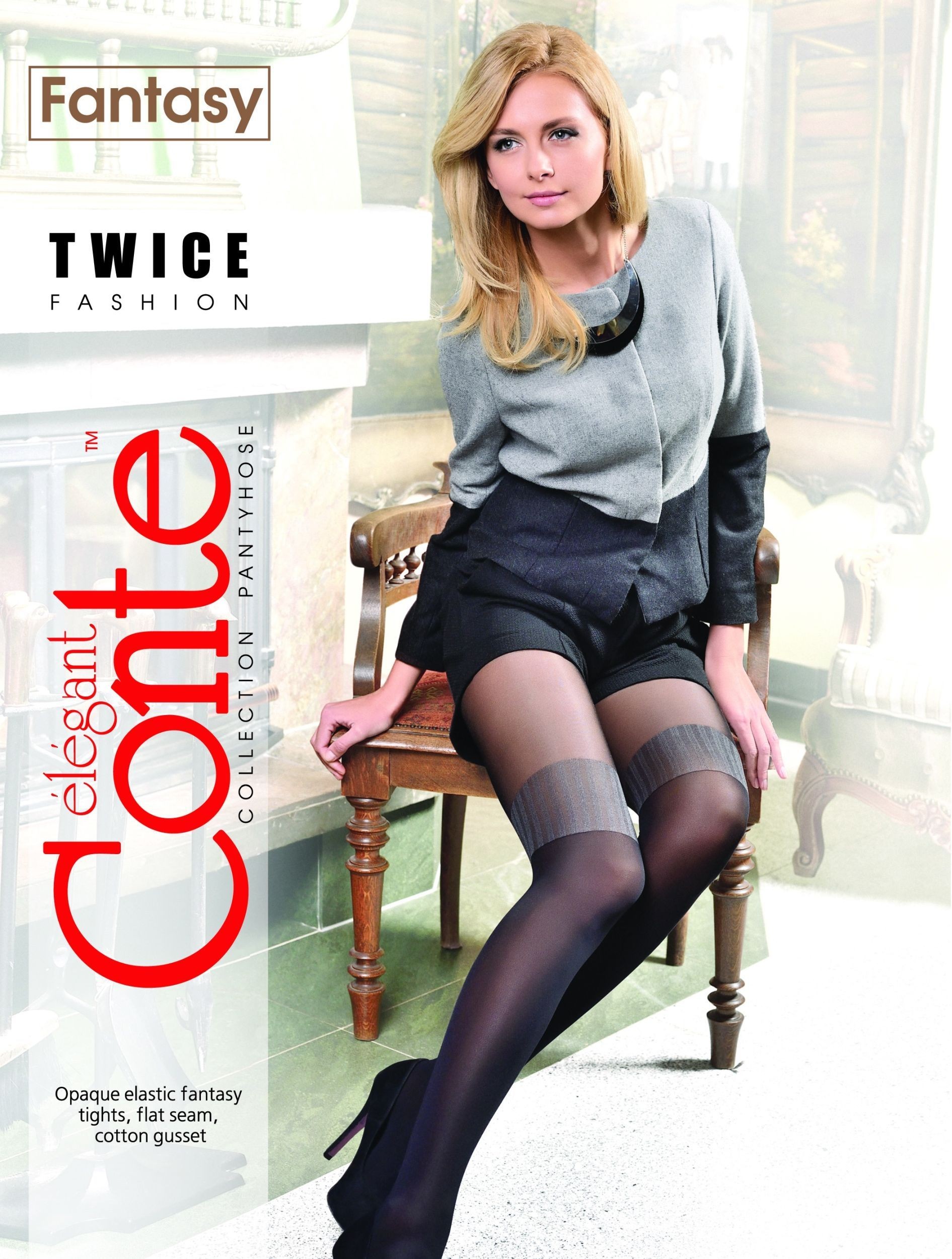 Эластичные фантазийные колготки плотностью 50 den с имитацией гольфин с меланжевой резинкой.