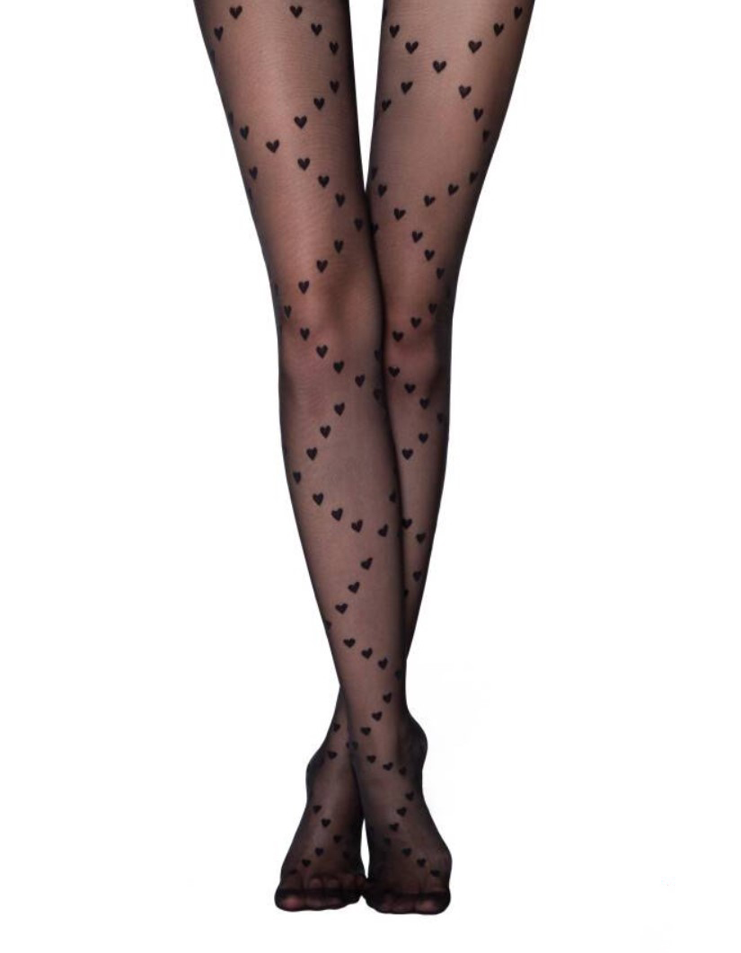 Колготки Dolce Vita с оригинальным рисунком из сердечек, имитирующим шнуровку, помогут создавать еще больше стильных и индивидуальных образов.