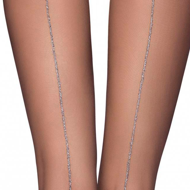 Модные и стильные, тонкие, однородные по всей длине фантазийные колготки плотностью 20 den. Безупречная посадка по фигуре, мягкая хлопковая ластовица и удобный эластичный пояс. Яркие акценты в вашем образе расставят имитация шва с металлическим блеском люрекса и изящный пришивной декоративный бантик.