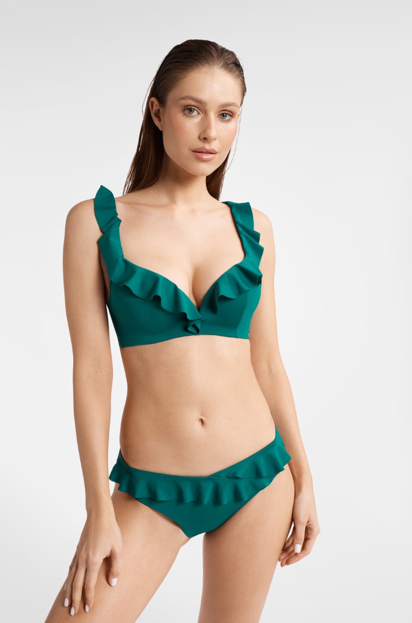 Эта модель не нуждается в представлении - топ бикини Bae push-up - это возвращение бестселлера, полюбившегося нашим покупателям. Необычная форма, девчачья привлекательность и нежная оборка - неоспоримые достоинства этого пляжного бюстгальтера с эффектом пуш-ап.The classic Bae bikini bottoms are great for women who appreciate timeless solutions.Популярный дизайн трусиков в стиле трусов обязательно понравится любителям комфорта. Низ бикини Bae привлекает внимание своим девчачьим кружевом, которое мягко облегает бедра.