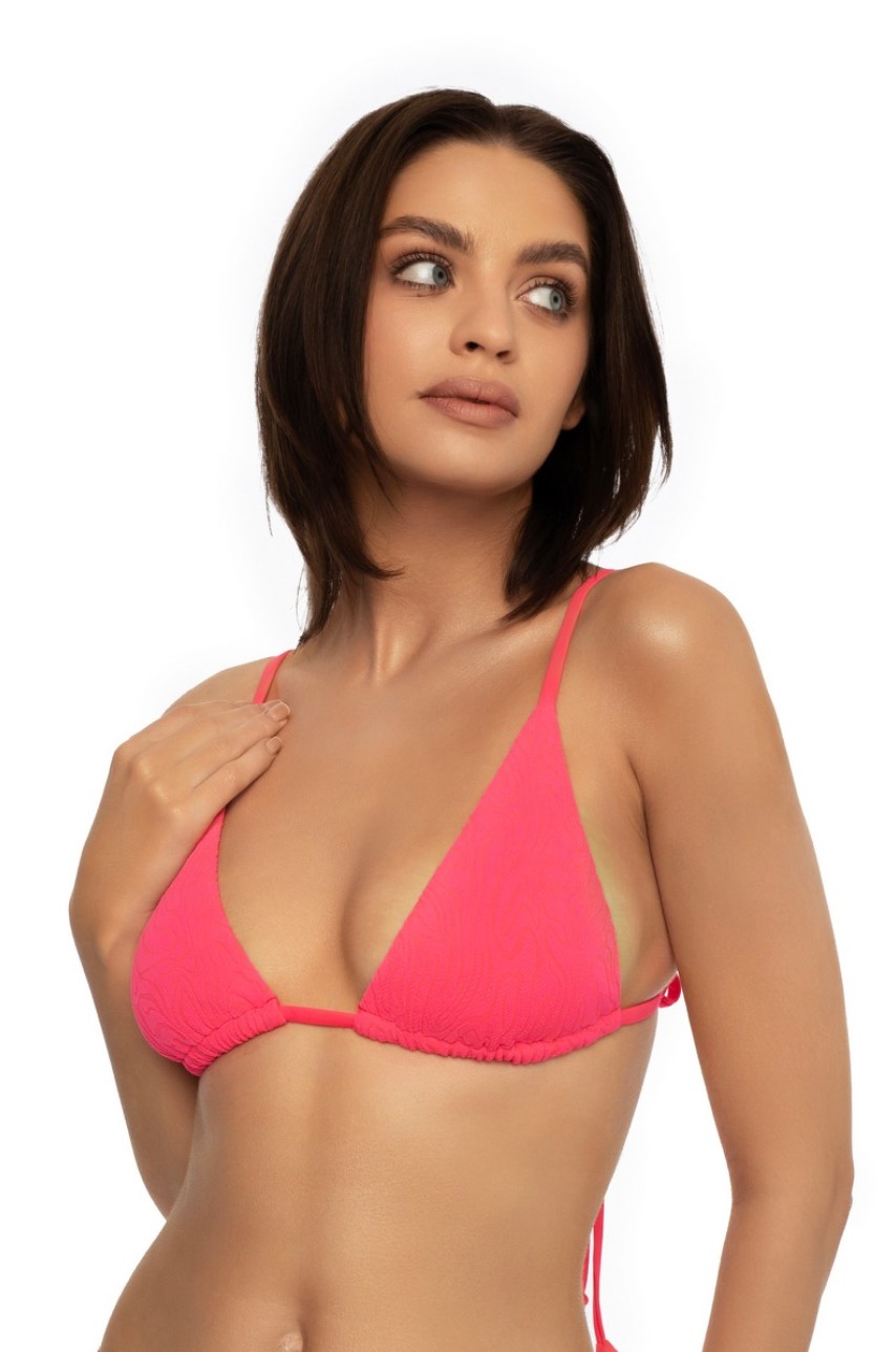 Бюст купальный 41575 BUENO с треугольной чашкой из тонкого съемного поролона, без кости. Завязывается на спине. Регулируемые бретели.Трусы купальные бразильяно 41576 BUENO. Пояс v-образной формы, плавки на подкладе из микрофибры. По бокам декоративное украшение в виде цветка.
