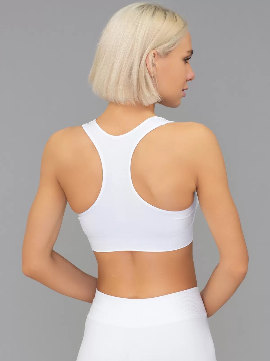 Женский топ со съемными формованными вкладышами в спортивном стиле. Выполнен из гладкой микрофибры, которая обладает высокой воздухопроницаемостью, впитывает влагу, приятно ощущается на теле, хорошо сохраняет форму и цвет. Бесшовная технология производства Seamless обеспечивает комфортное облегание благодаря отсутствию вертикальных швов и вывязанным переходам в области груди. Широкие удобные бретели и мягкий пояс обеспечивают надежную поддержку.