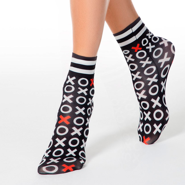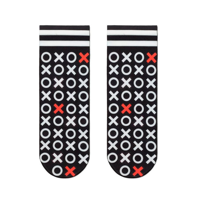 Плотные эластичные фантезийные носки для женщин с тематическим принтом в виде крестиков и ноликов. Благодаря инновационным нитям лайкра носки восстанавливают свою первоначальную форму раз за разом и медленно изнашиваются.
