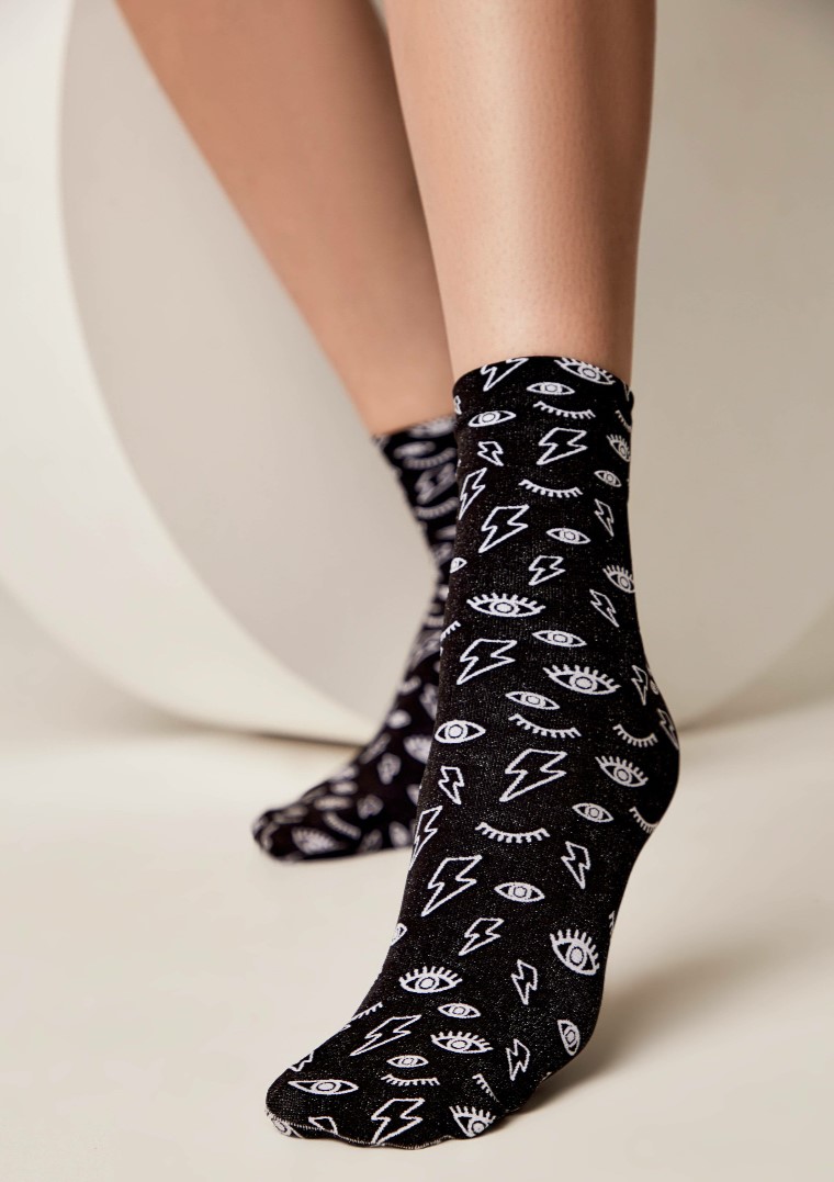 Плотные носки Fantasy с контрастным рисунком в стиле тату-эскизов выглядят так стильно и оригинально, что вам захочется включить их в свой гардероб и носить под классическую или спортивную обувь.