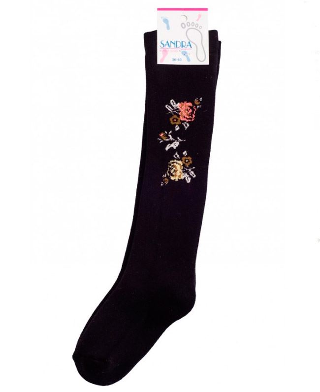 Женские однотонные хлопковые гольфы с добавлением лайкры. Декорированы цветочным принтом.