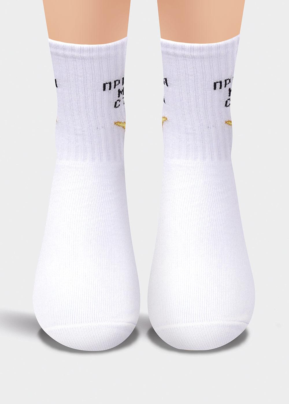 Стильные женские носки с удлиненным ластичным паголенком. С веселым рисунком и забавным текстом: эй, принцесса, меньше стресса.