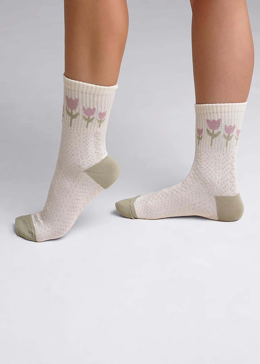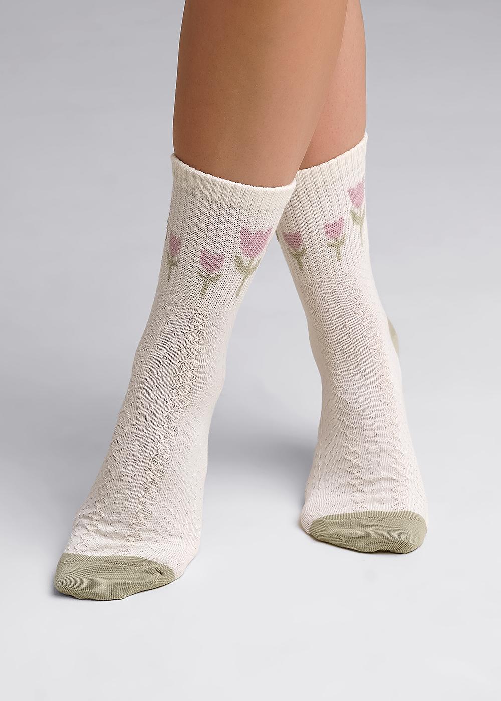 Носки женские 8 Марта ажурная вязка с жаккардовыим рисунком Цветок Тюльпаны.