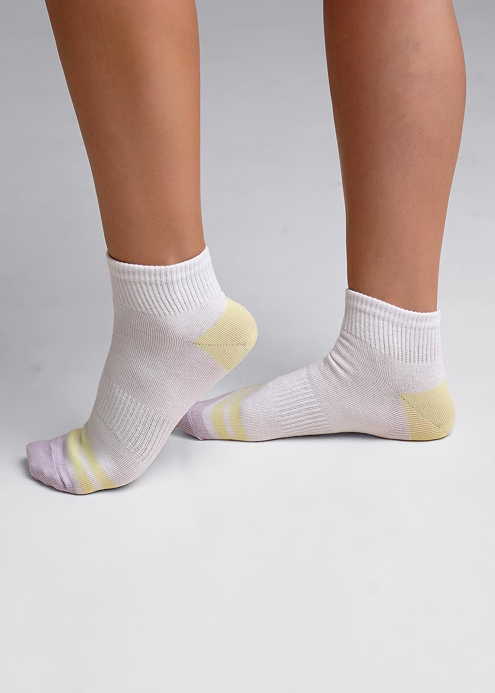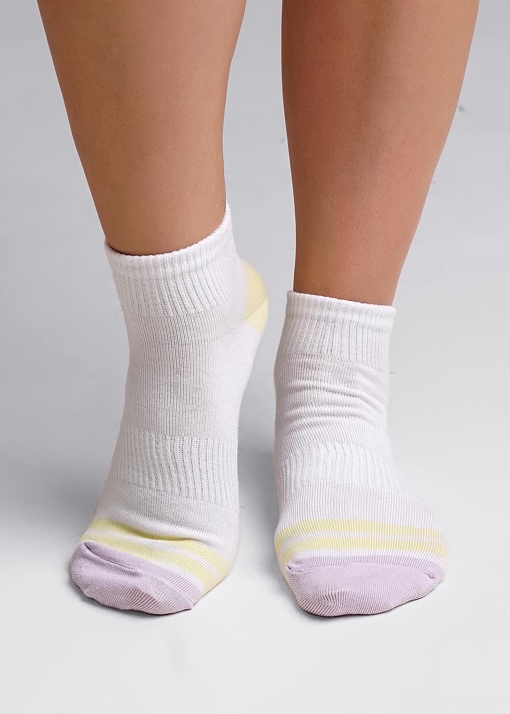Укороченные женские носки с цветными мыском и пяткой.