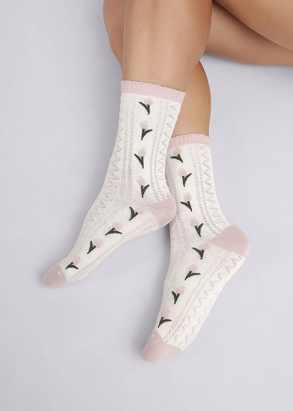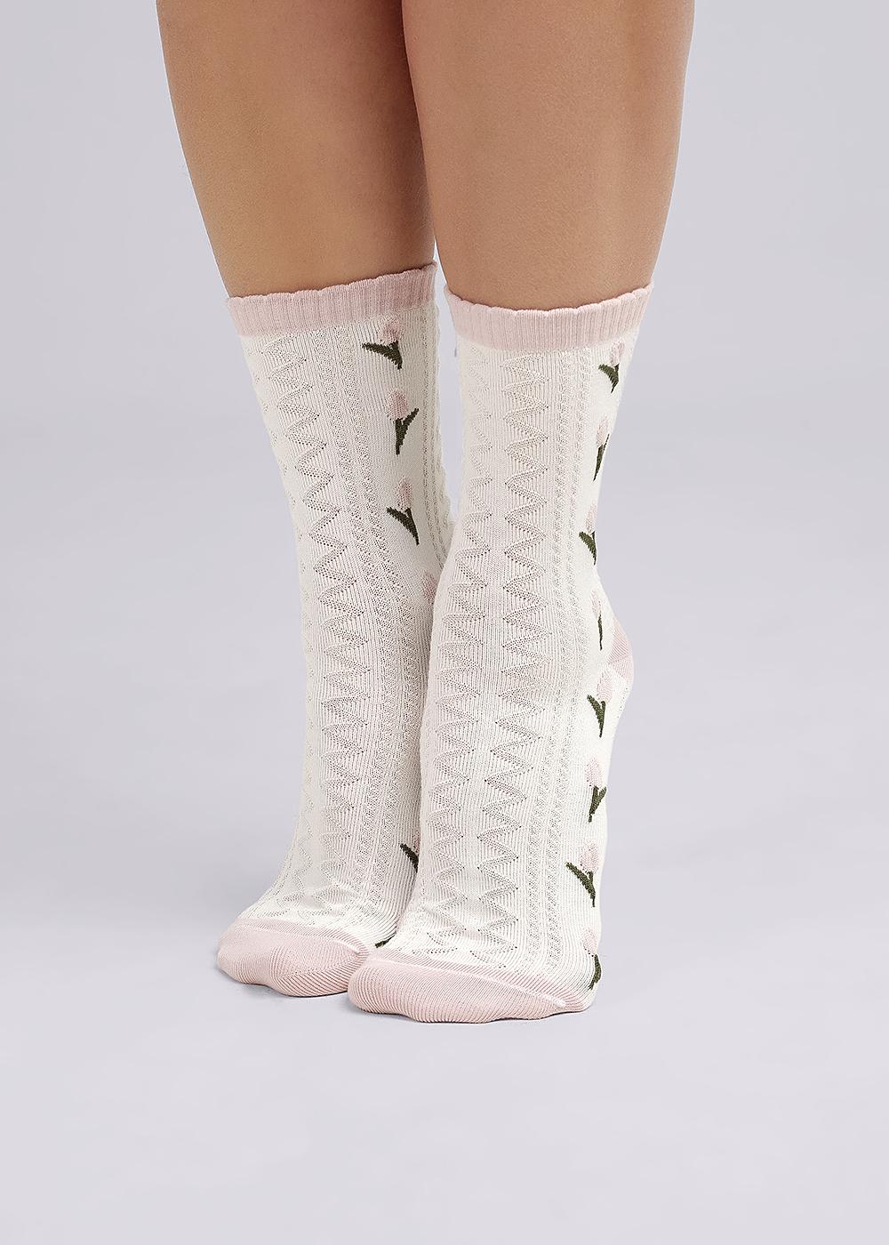 Женские ажурные носки с рисунком тюльпаны, выделенными мысом, пяткой и бортом