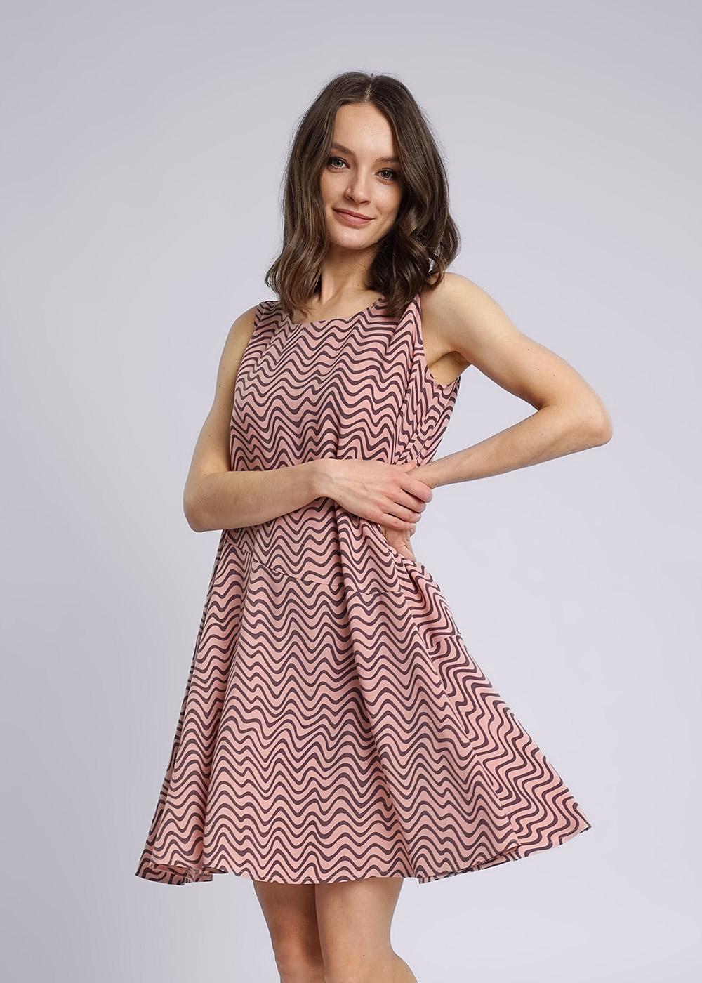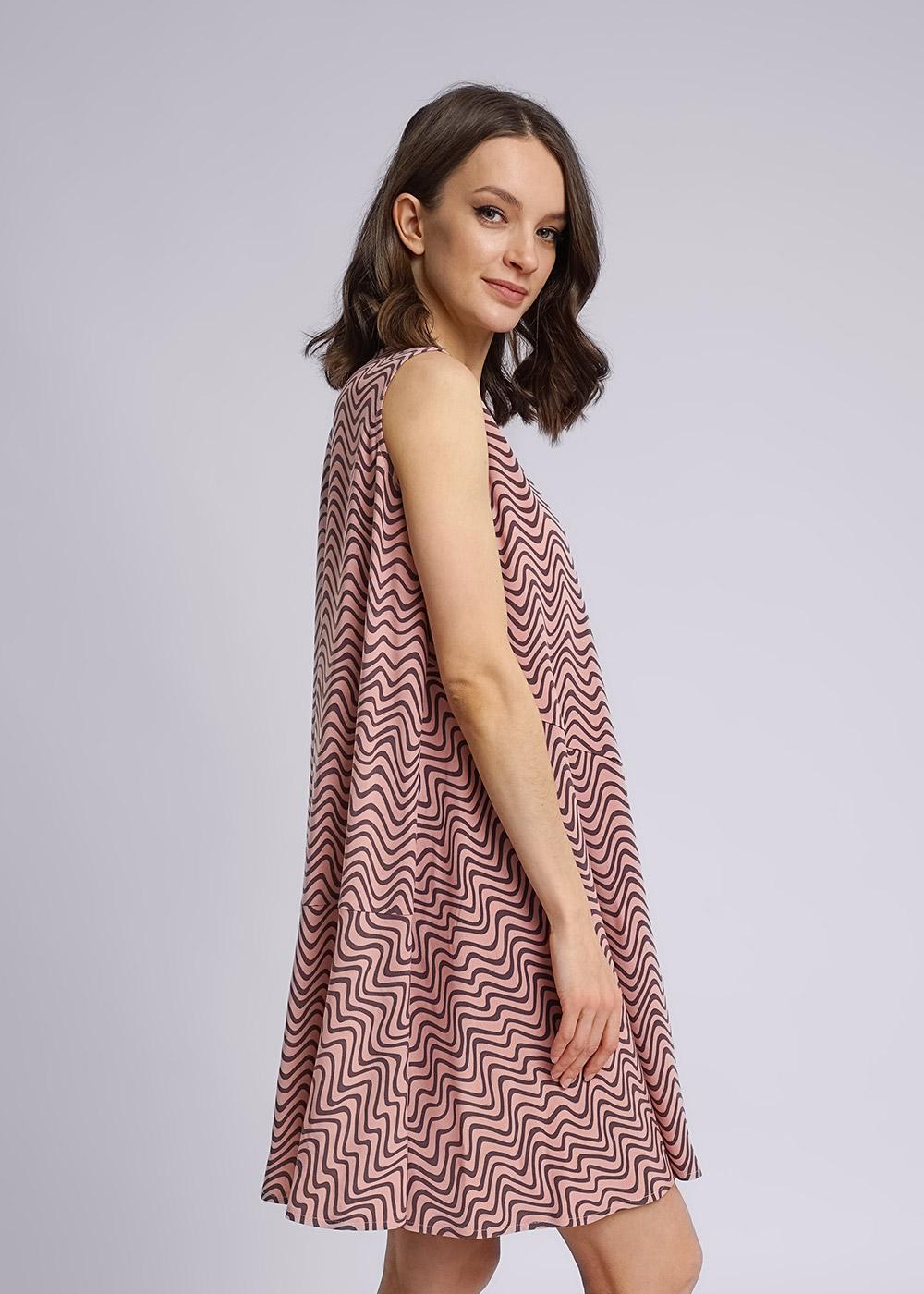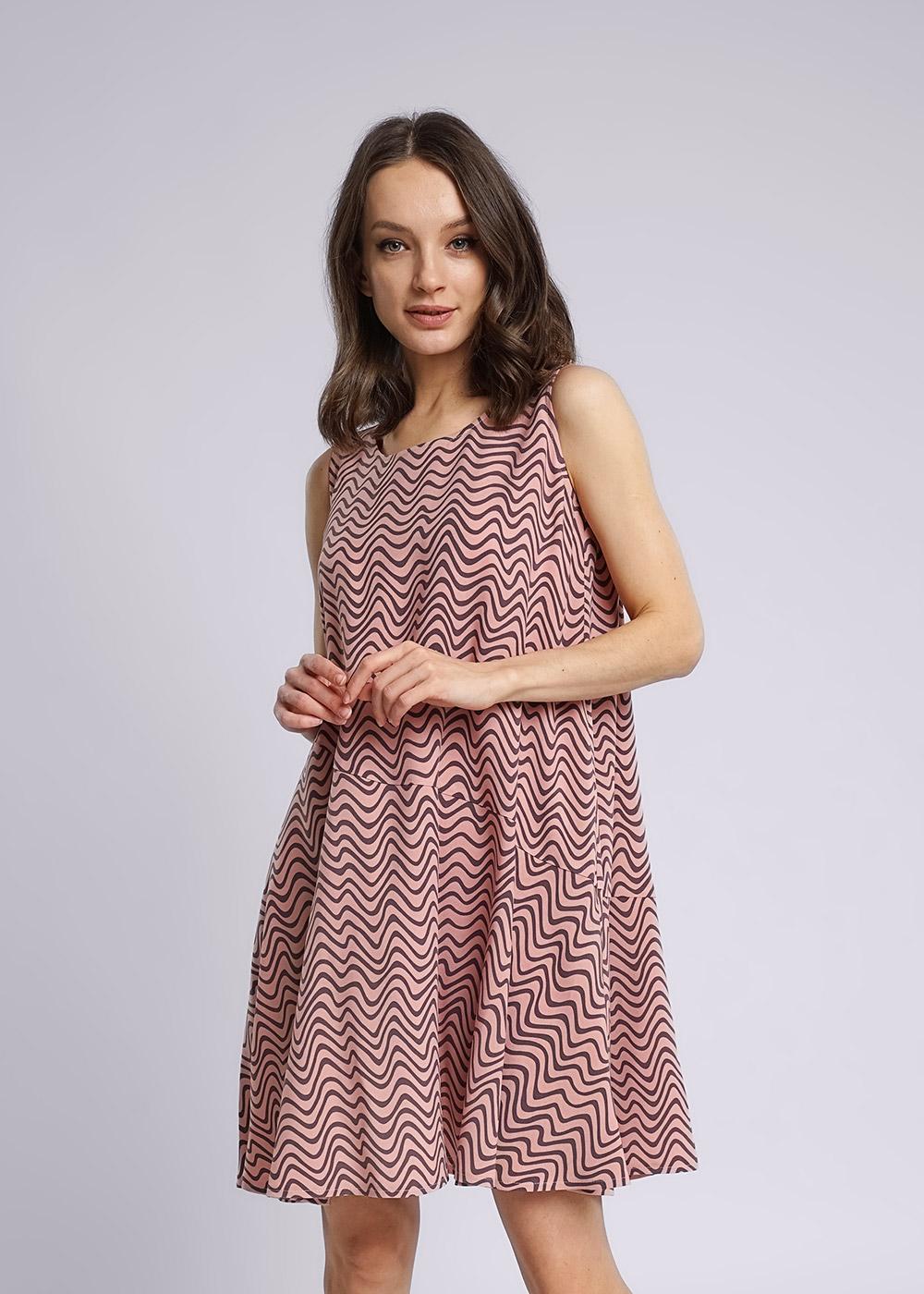 Платье расклешенное к низу из набивного штапеля. Широкая бретель, округлая горловина.