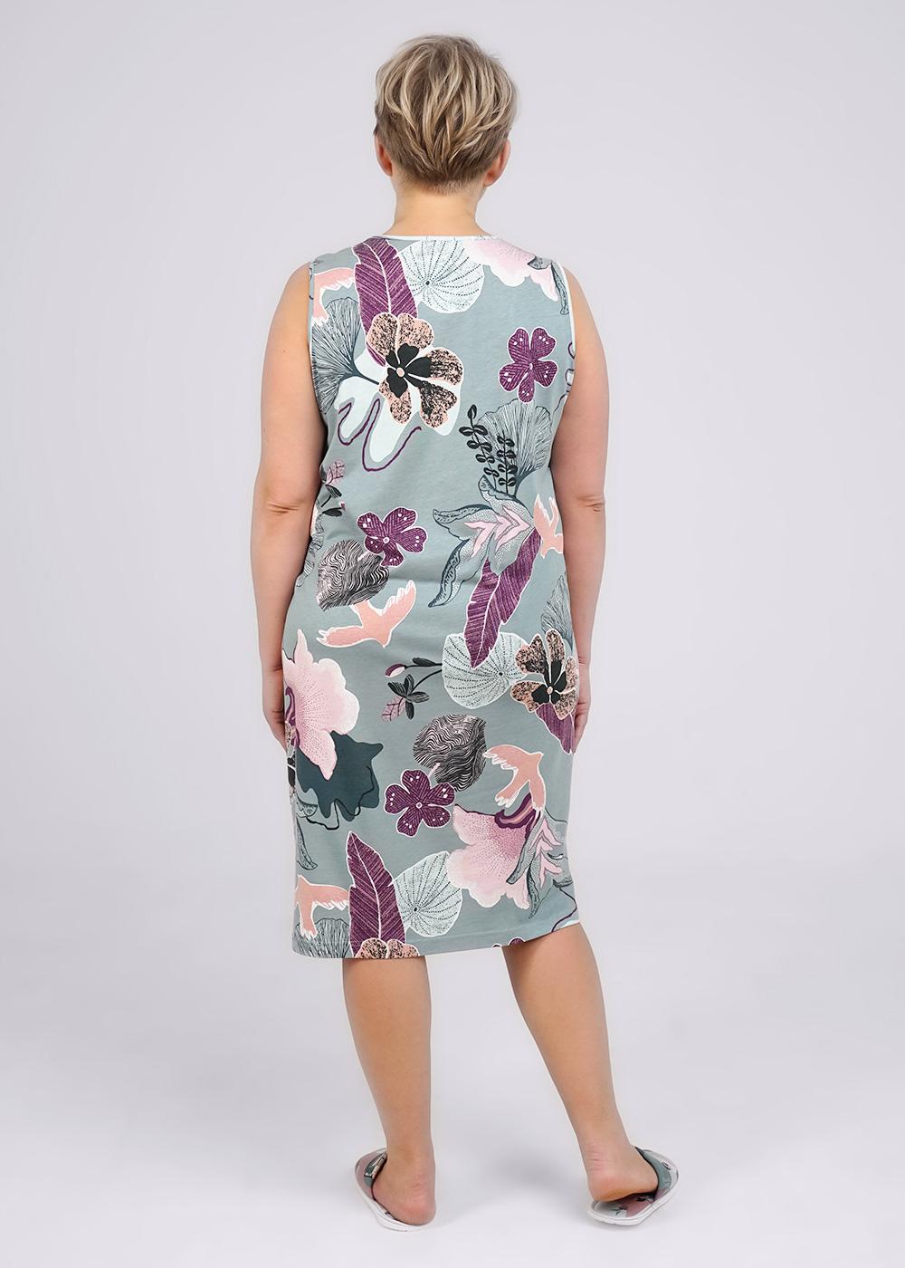 Сорочка ночная для дома из трикотажного полотна с хлопком и модалом в составе. Широкая бретель. V-образный вырез горловины декорирован кружевом.