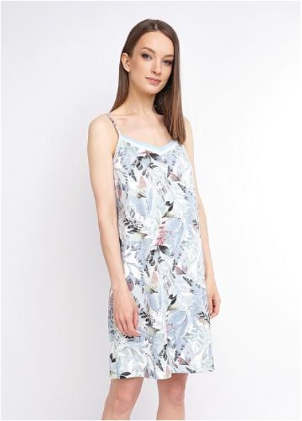 Ночная сорочка из трикотажного полотна на брителях без регулировок. По переду дополняет дизайн небольшая вставка из кружева.