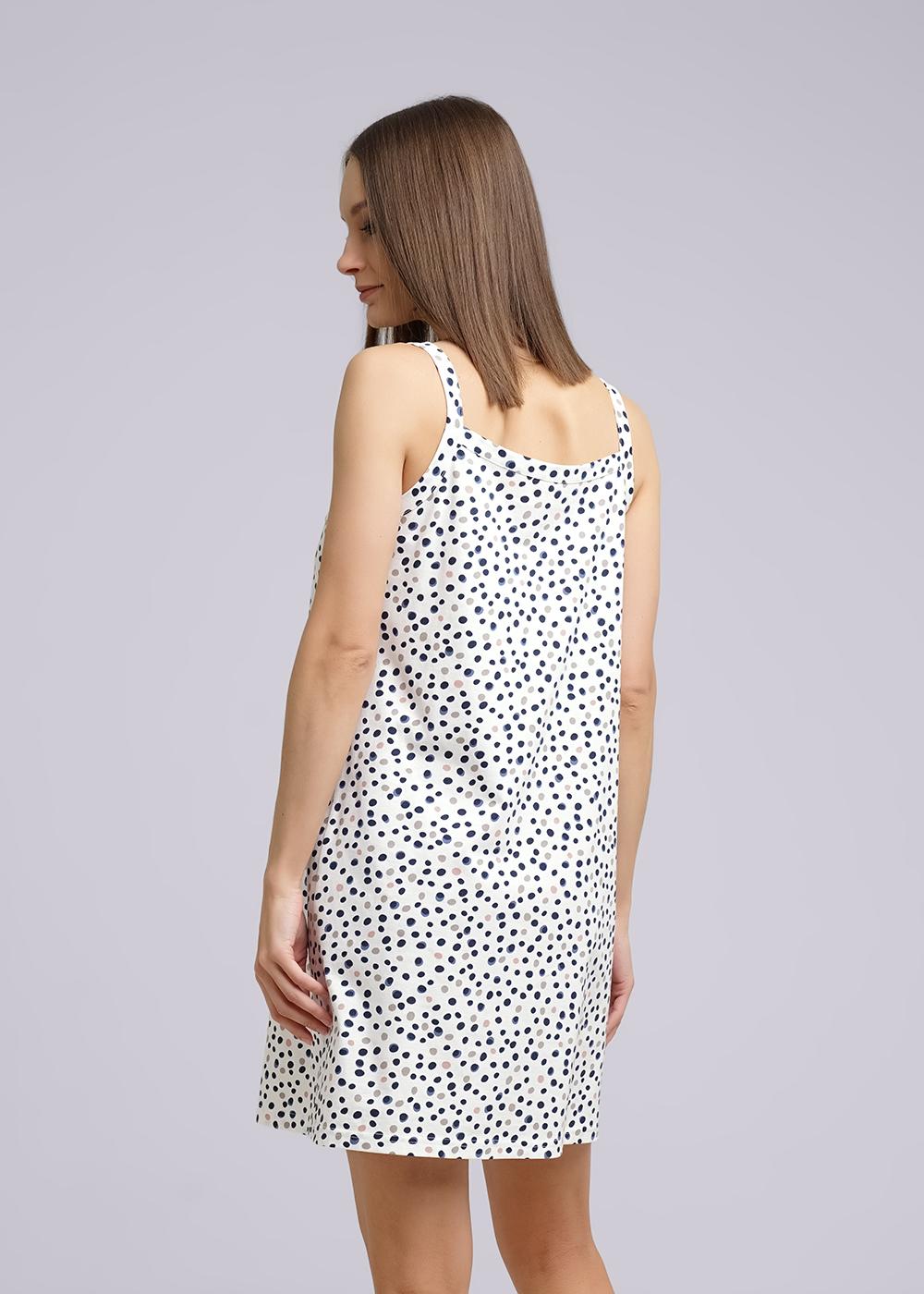 Ночная сорочка А-образного силуэта из хлопкового трикотажного полотна. Длиной чуть ниже колена, на узких бретелях. По горловине и пройме окантовка.
