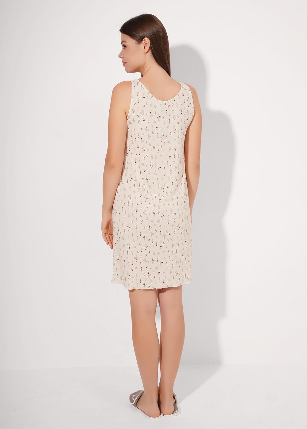 Ночная сорочка из трикотажного полотна кашкорсе. А-образного силуэта на бретелях. По горловине и пройме окантовка. Спереди по горловине сборка на резинку. По низу изделия мелкий оверлок.