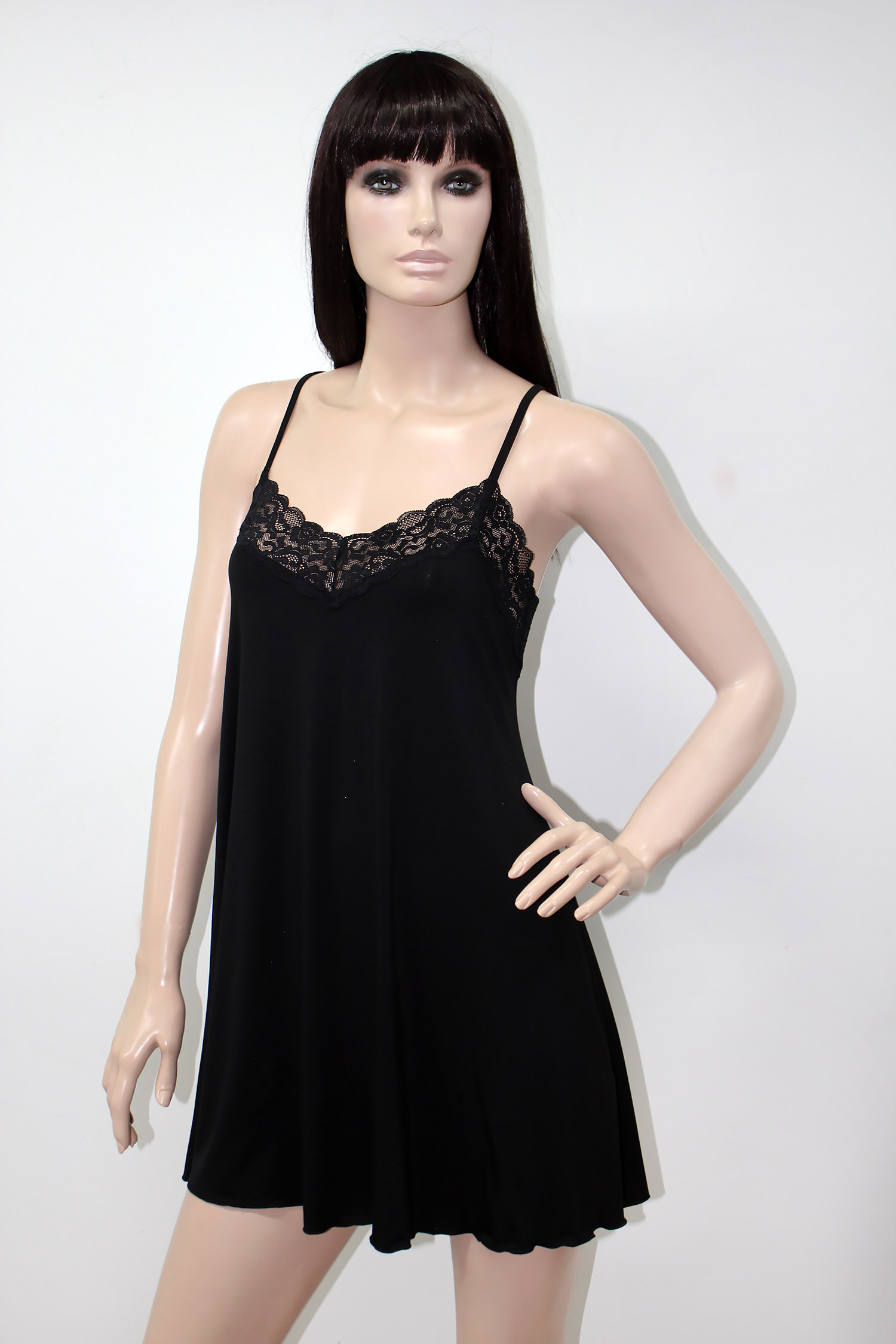 Женская сорочка выполнена из однотонной мягкой и приятной к телу вискозы молочного цвета. Модель приталенная, талия, зона декольте и бретели декорированы ажурным кружевом. Длина до колен.