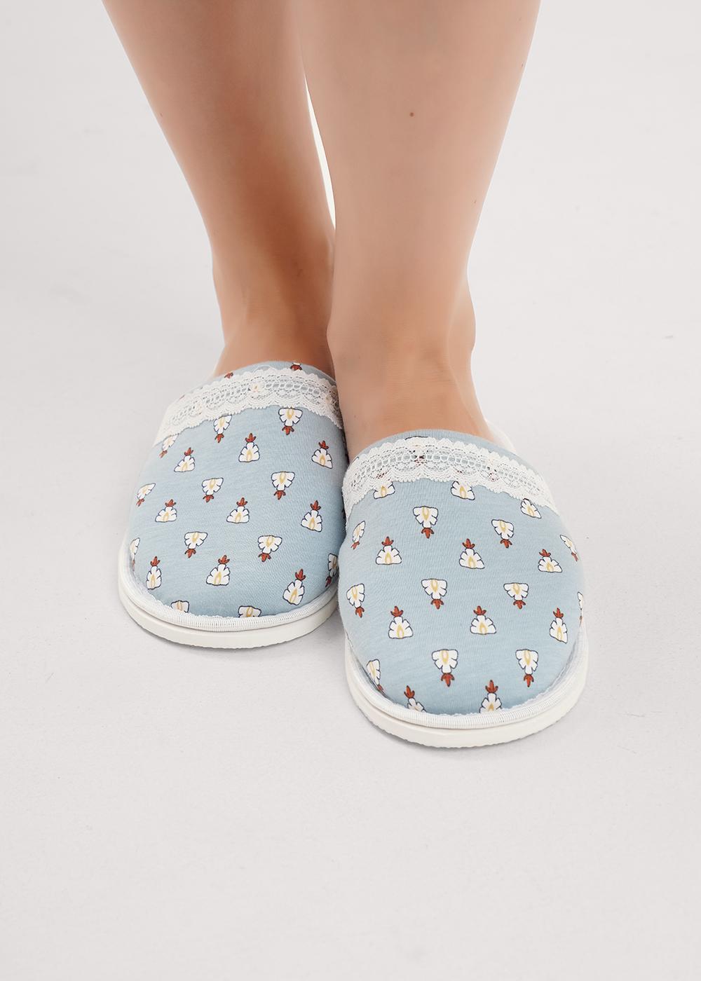 Лёгкие тапки для дома и отдыха с закрытым носом из хлопкового трикотажного полотна с добавлением модала, сверху узкое кружево. Толстая подошва.