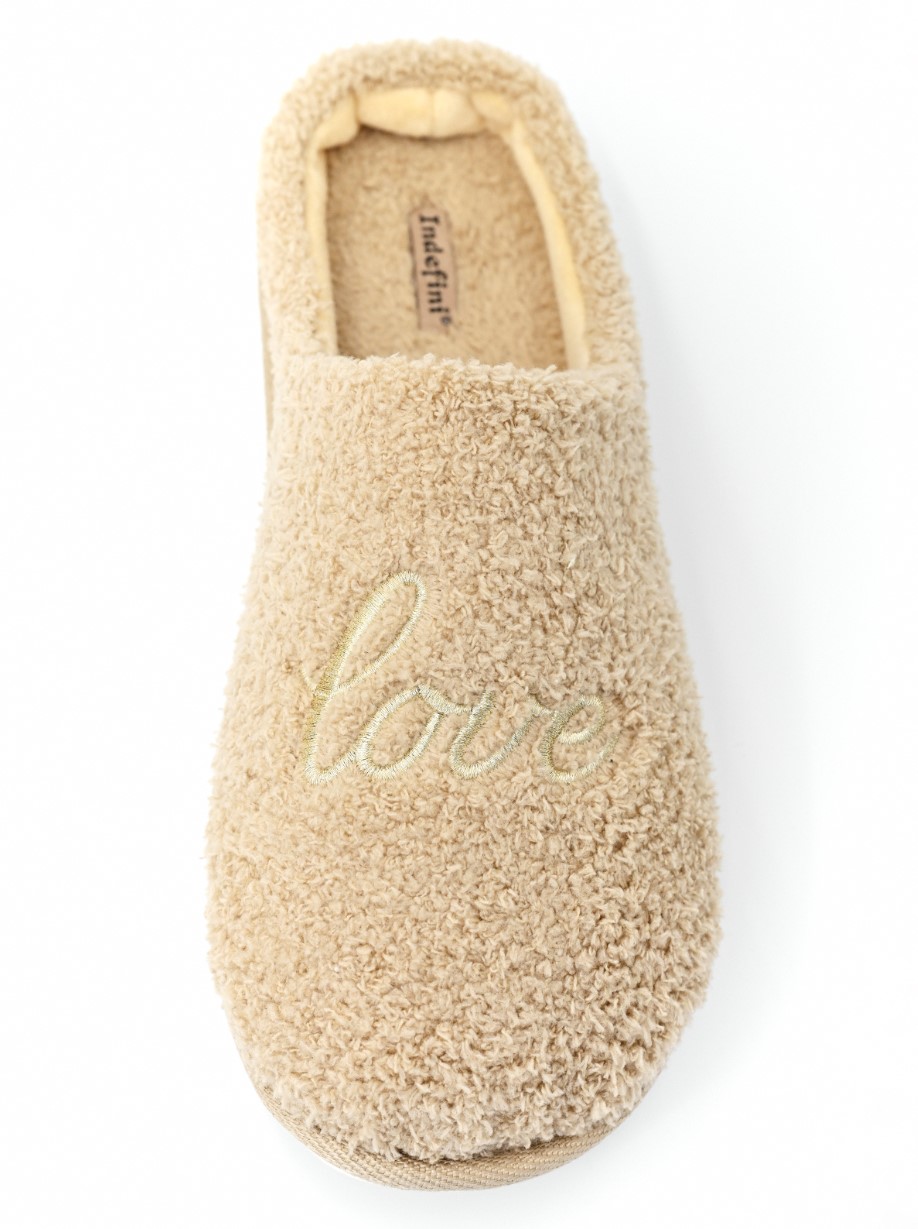 Выполнены в нежно-бежевом цвете с изящной золотистой вышивкой слова «love» на верхней части.Модель-слайдеры без задника, с удобной анатомической стелькой и мягкой подкладкой.Идеальный выбор для тех, кто ценит уют, мягкость и нежную эстетику в непринужденной обуви.