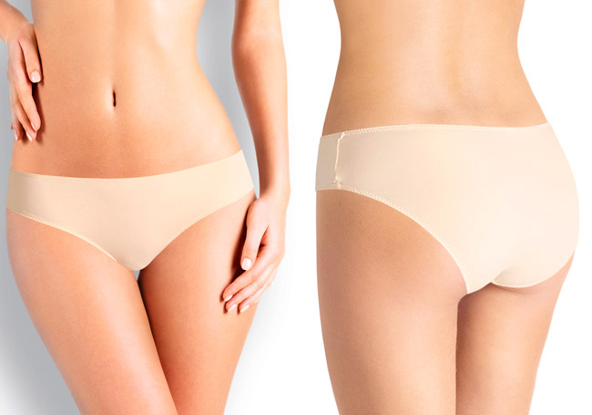 Женские трусы, модель бикини из эластичного, однотонного полотна.