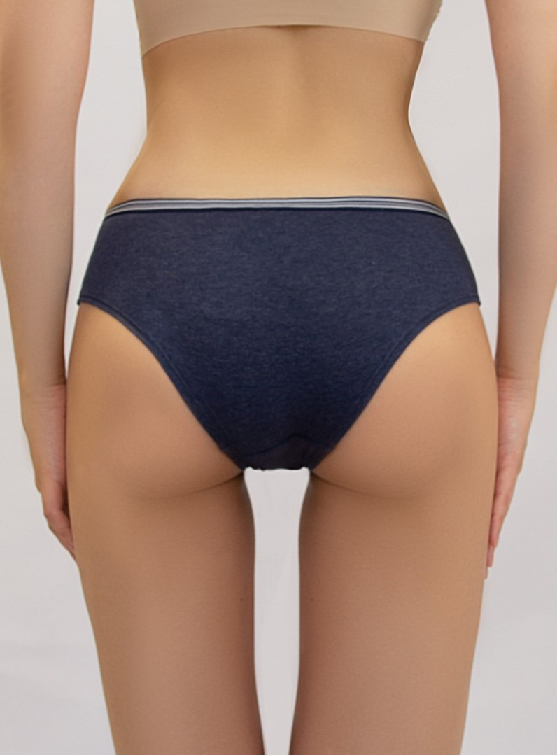 Женские трусы от торговой марки Индефини. Трусы-шорты из хлопка, синего цвета, на мягкой резинке, средней посадки.