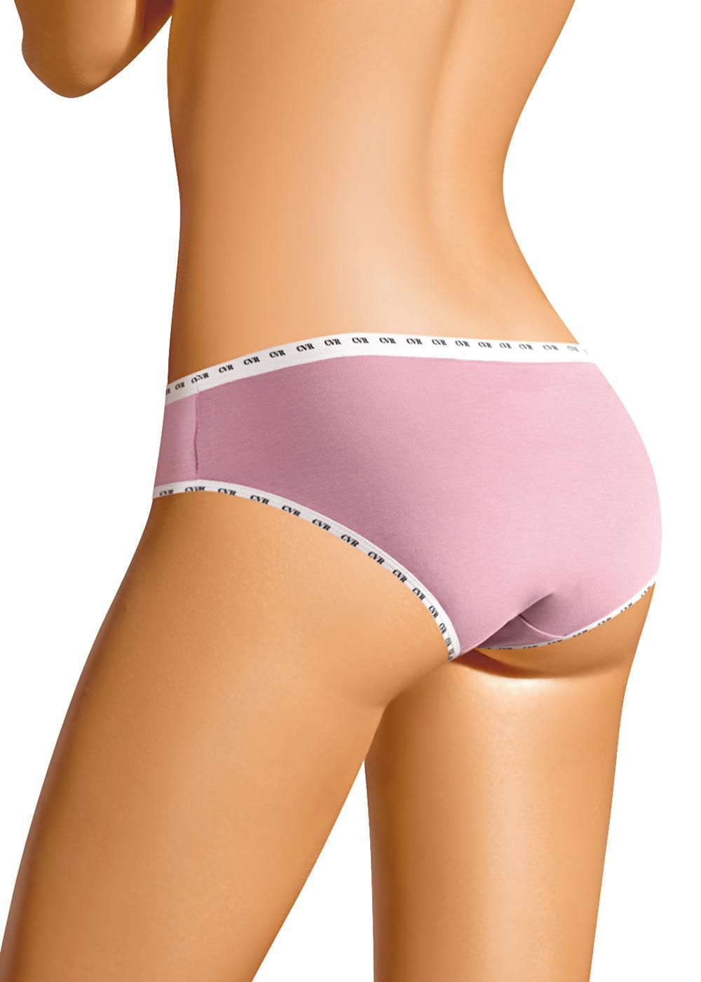 Трусы бикини комфортной посадки из трикотажного полотна. По талии резинка с текстом. По ножке окантовочная резинка.
