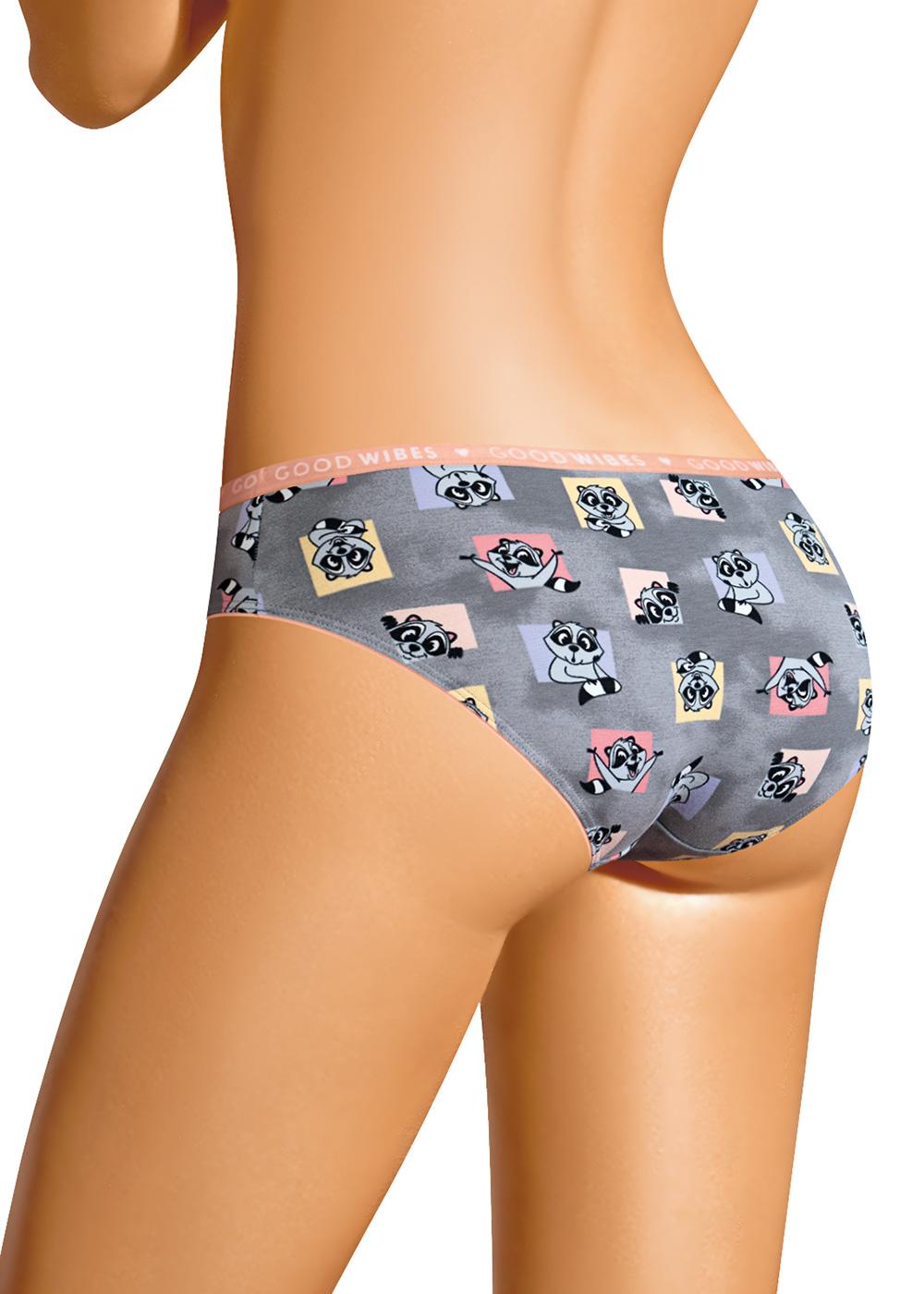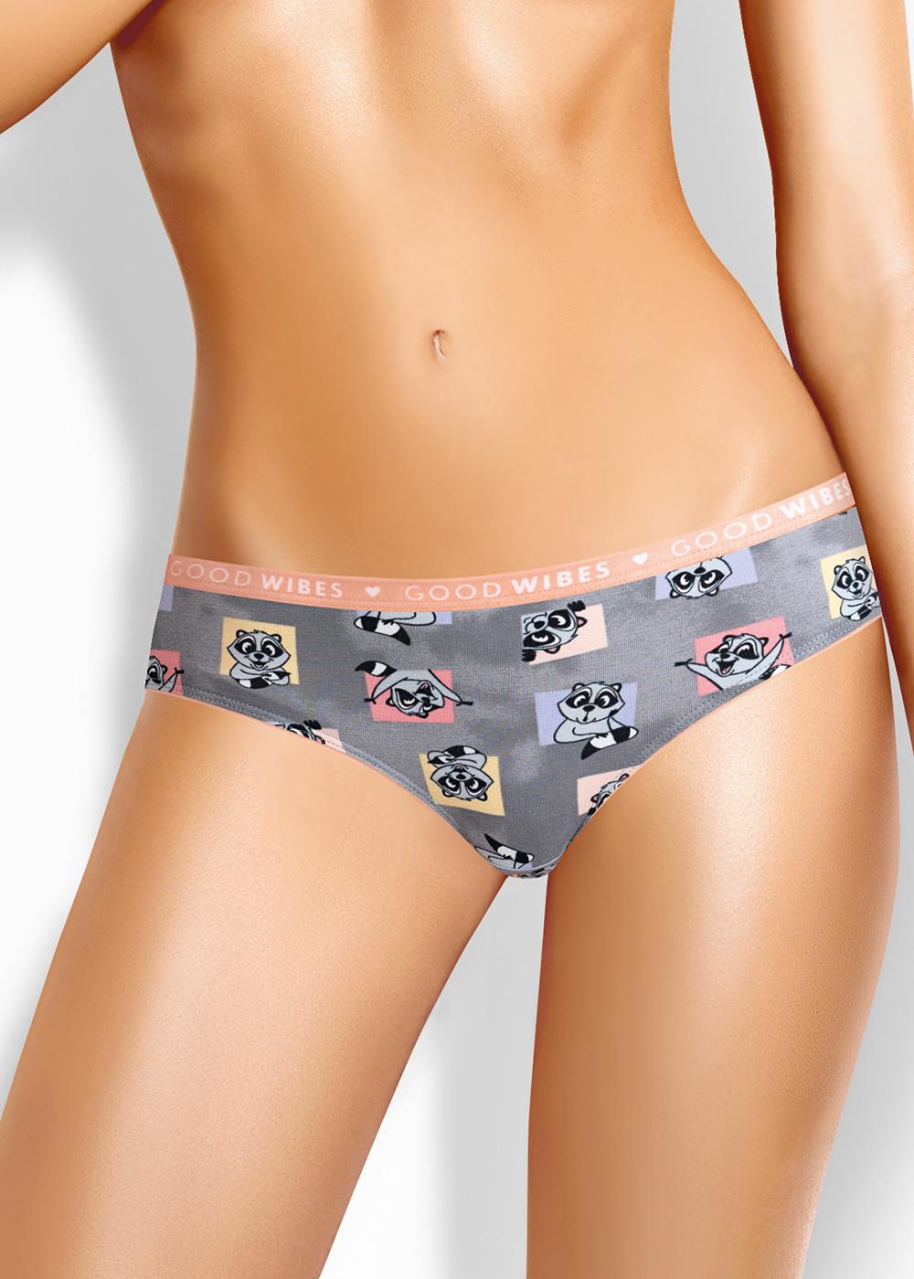 Трусы бикини из хлопкового набивного полотна с добавлением эластана. По талии окантовочная резинка. По ножке резинка-кантом.