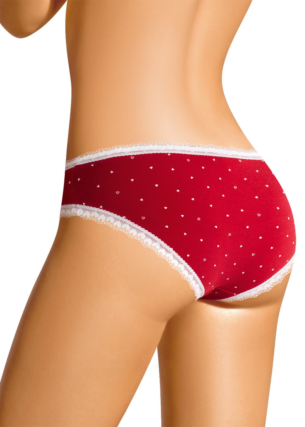 Трусы-бикини женские из эластичного хлопкового полотна. Обработка краев - узким кружевом. По переду декоративная сборка и бант.