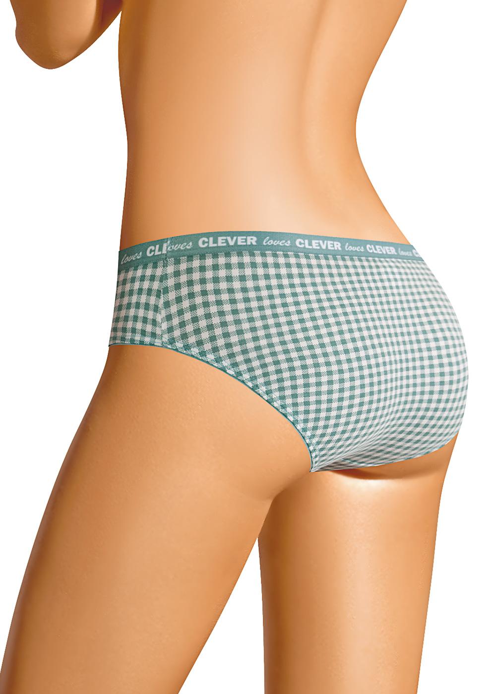 Трусы бикини женские из эластичного хлопкового полотна. Обработка краев по талии - жаккардовая резинка, по ноге - окантовка.