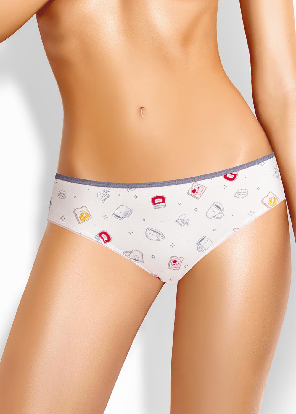 Трусы бикини женские из эластичного хлопкового полотна. Обработка краев по талии и ноге окантовочная резинка.