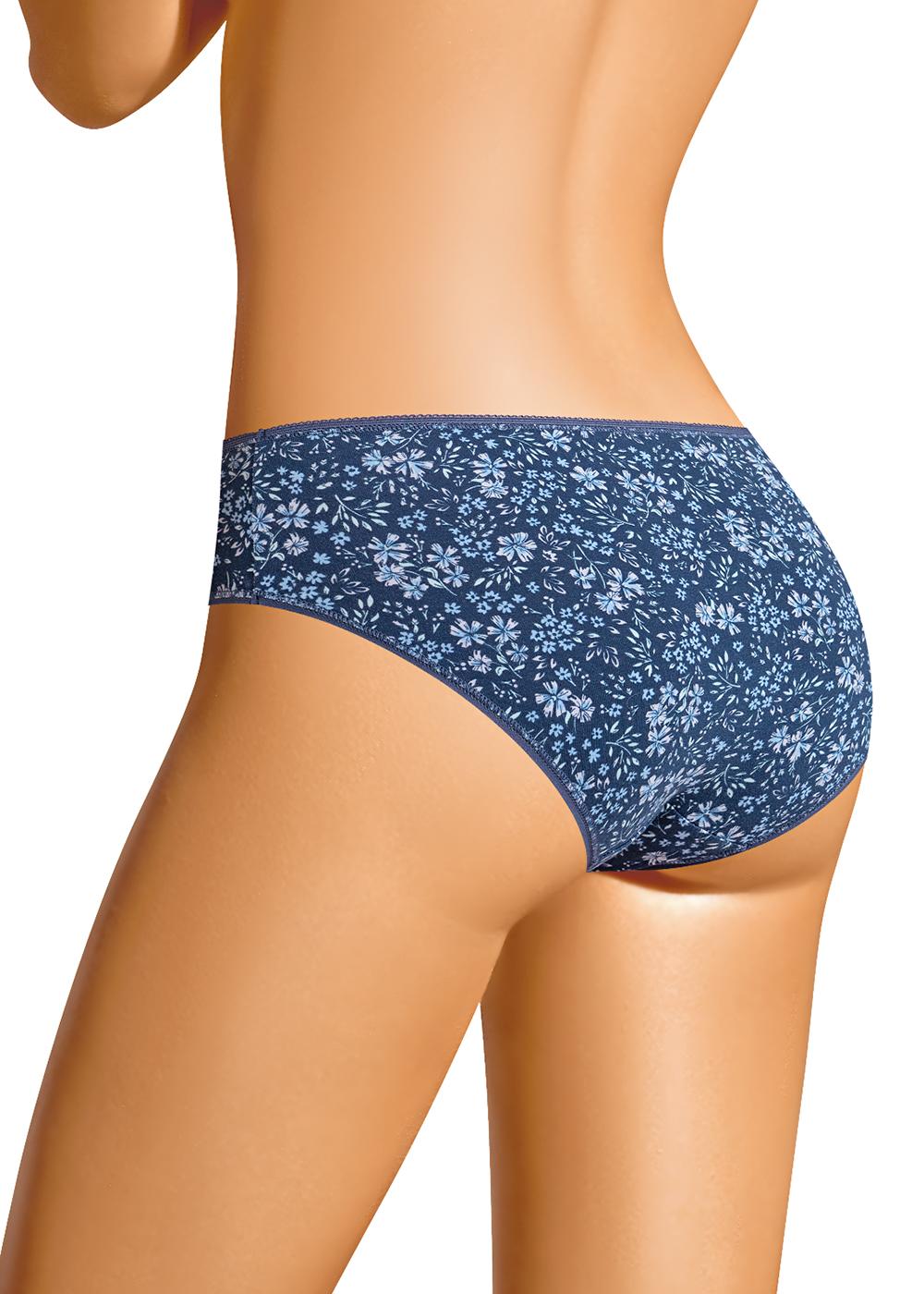 Трусы бикини женские из эластичного хлопкового полотна. Обработка краев по талии - ажурная резинка, по ноге - полуокантовка. По талии и ноге - застил. По переду атласный бант.