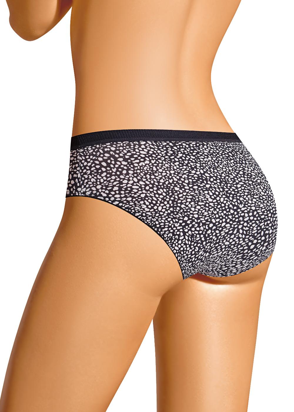 Трусы бикини женские из эластичного хлопкового полотна. Обработка краев по талии - жаккардовая резинка, по ноге - полуокантовка сверху. По переду атласный бант.