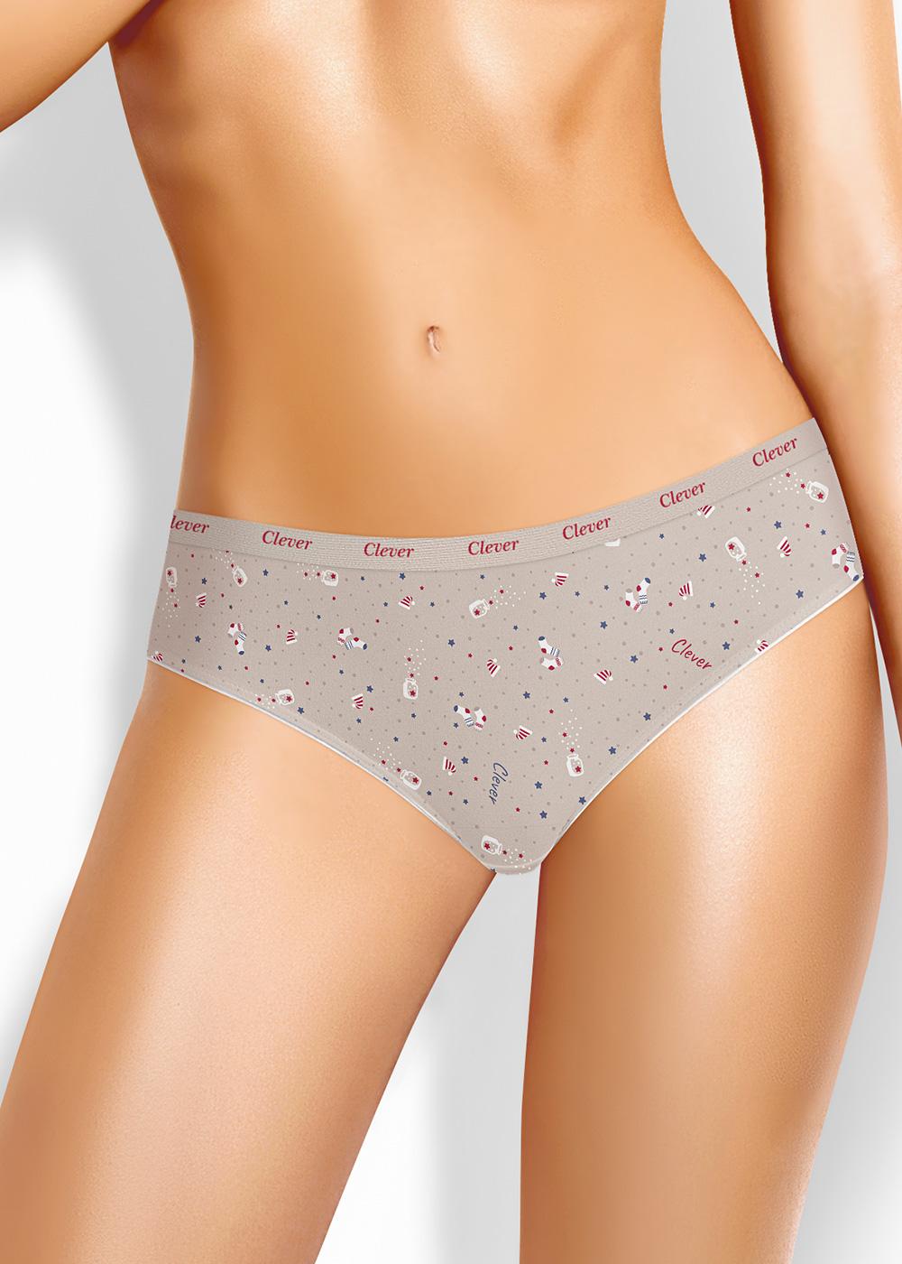 Трусы бикини женские из эластичного хлопкового полотна. Обработка краев по талии - окантовка с принтом, по ноге - окантовка.