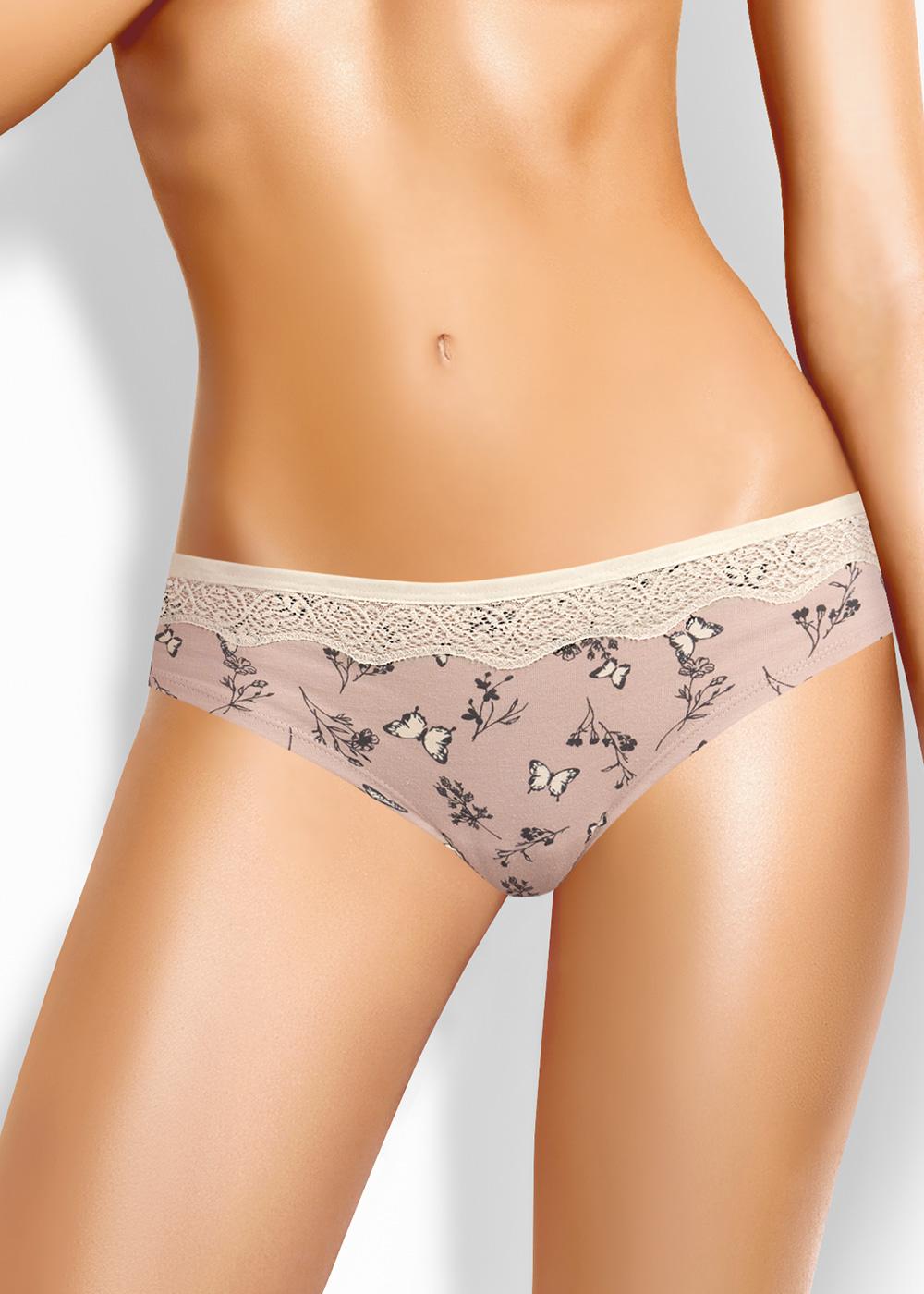 Трусы "бразилиана" комфортной посадки из трикотажного полотна с добавлением эластана, по талии резинка-окантовка . По линии талии кружево.