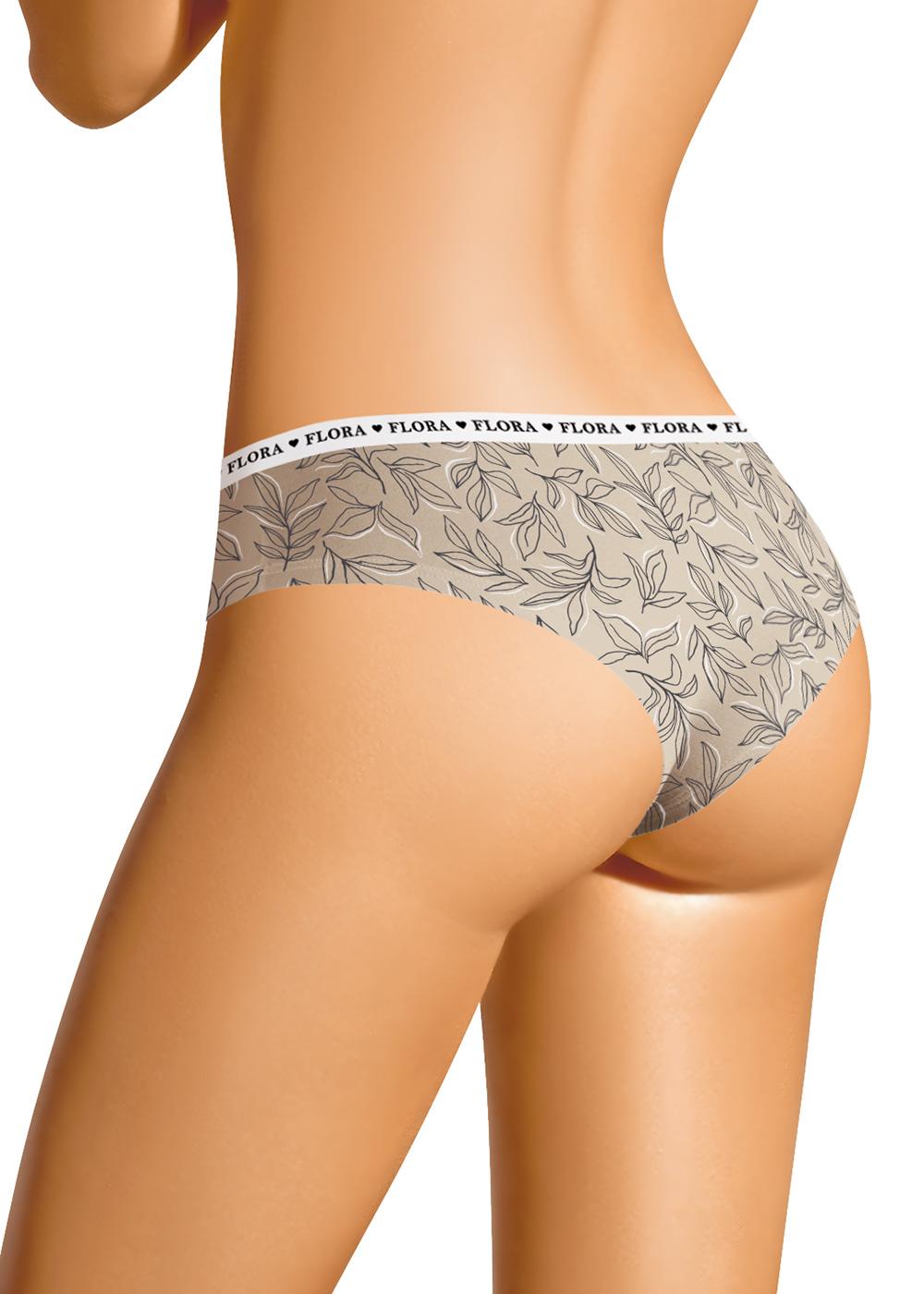 Трусы бразилиана из хлопкового полотна в растительную набивку с добавлением эластана. По талии резинка.