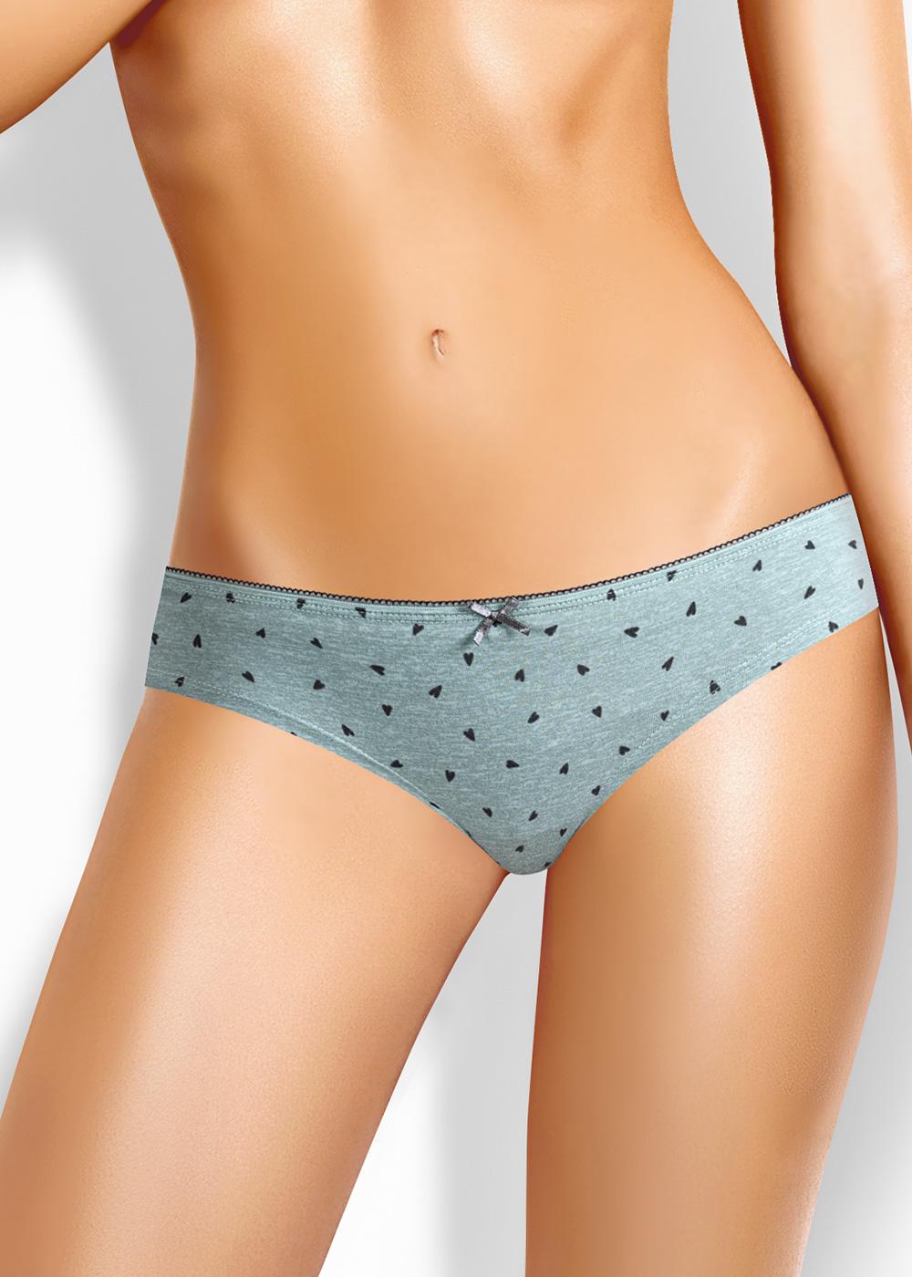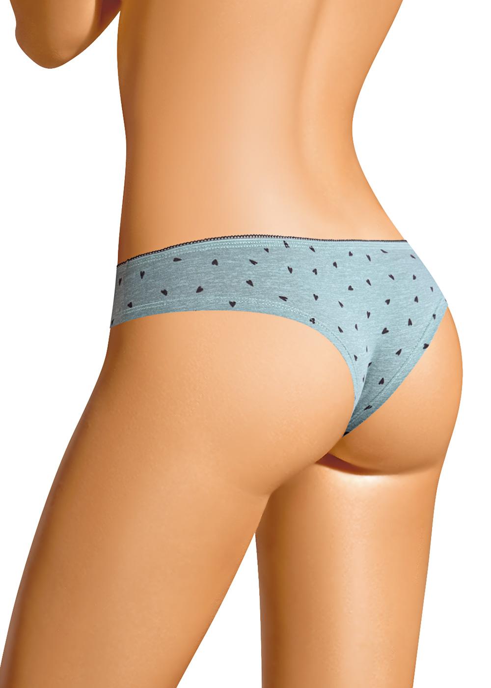 Трусы бразилиана из набивного хлопкового полотна с добавлением эластана комфортной посадки. По талии ажурная резинка. Спереди бант.
