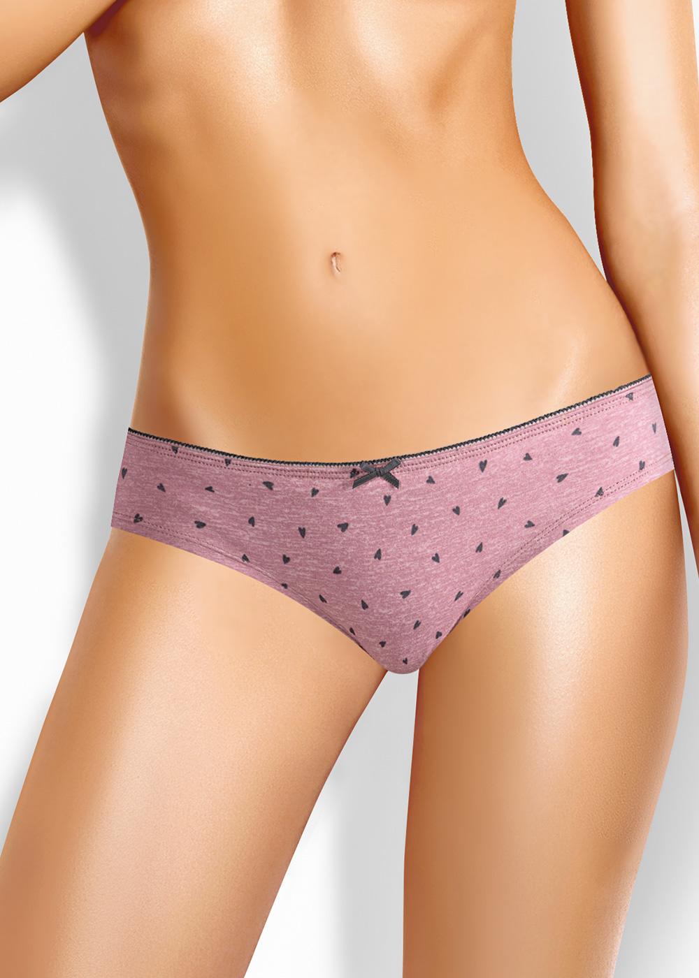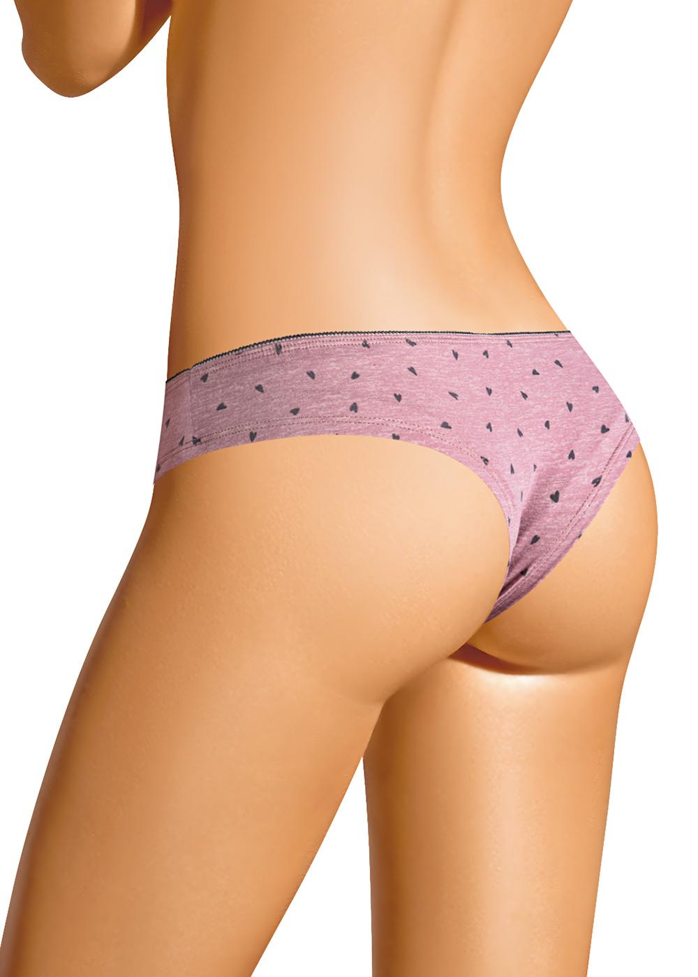 Трусы бразилиана из набивного хлопкового полотна с добавлением эластана комфортной посадки. По талии ажурная резинка. Спереди бант.