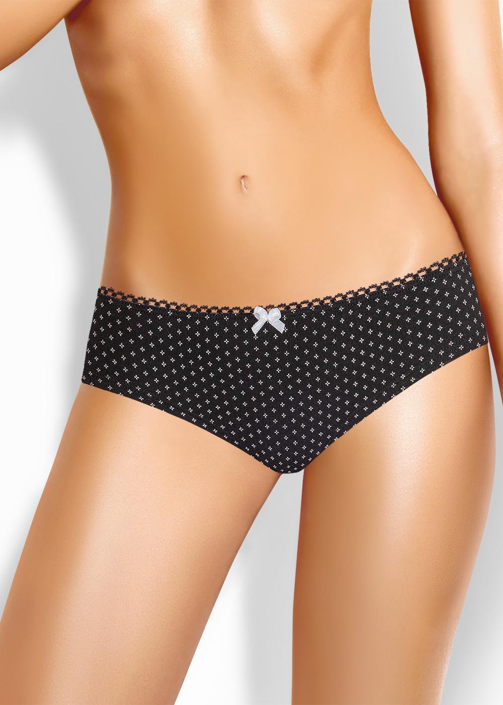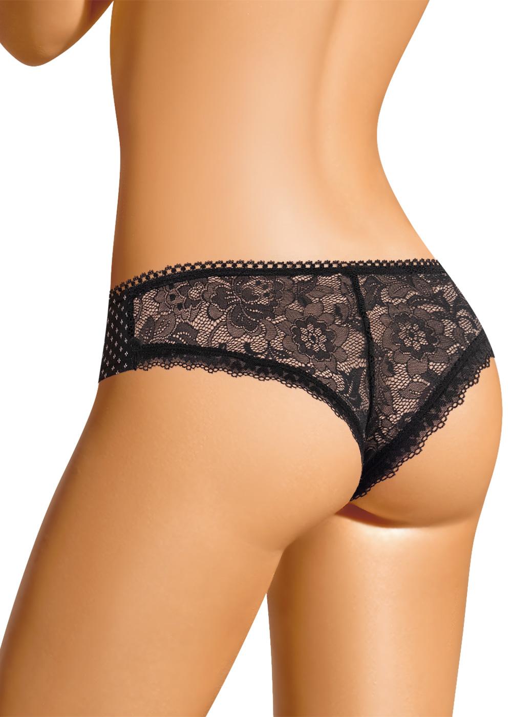 Трусы-бразилиано женские из эластичного хлопкового полотна. По спинке кружевное полотно. Обработка краев по талии - резинка с фестоном. По переду бант.