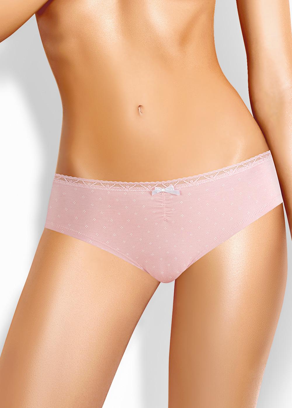 Трусы-бразилиано из эластичного плотного хлопкового полотна. Обработка краев по талии - узким кружевом, по ноге - подгибка. По переду декоративная сборка и бант.