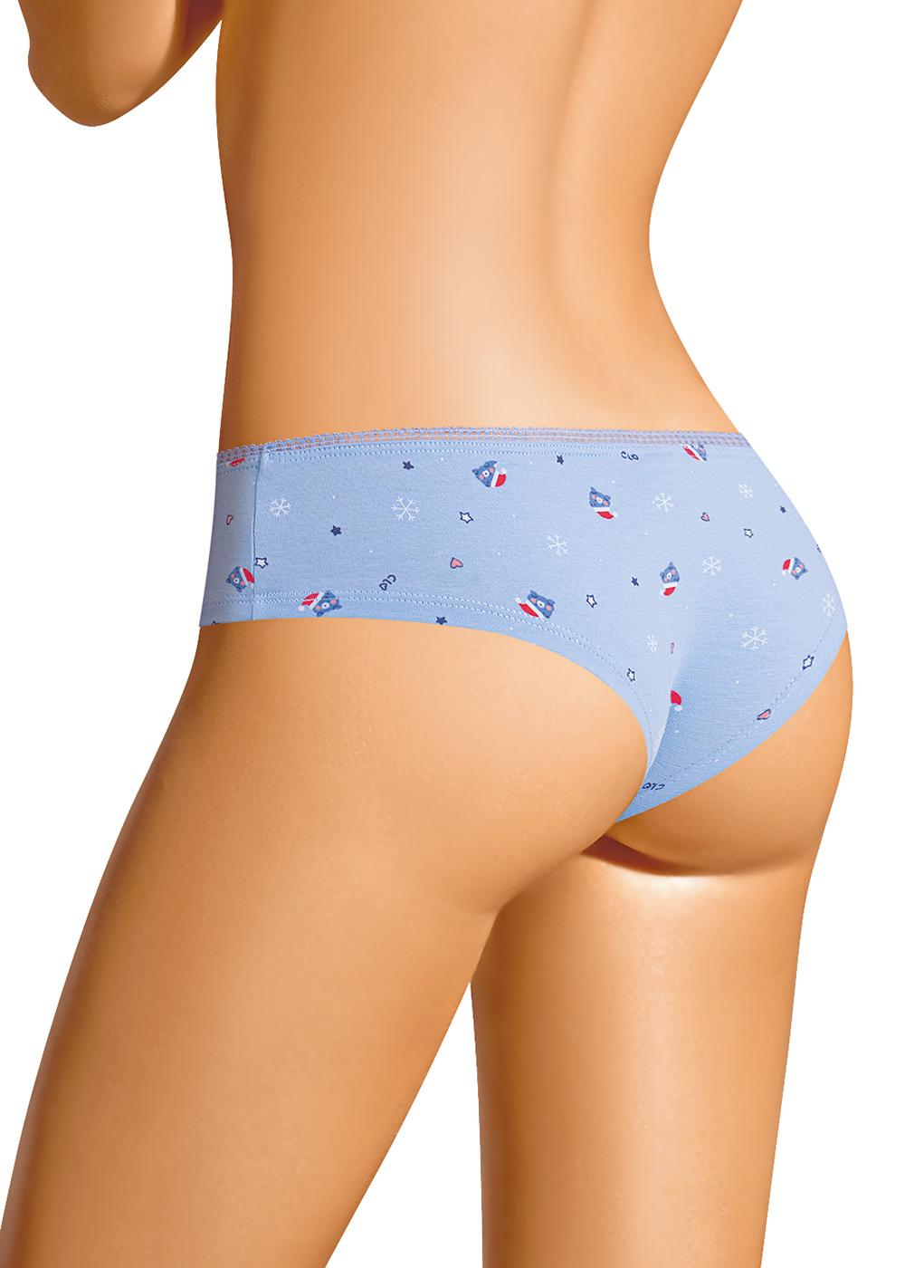 Трусы бразилиана женские из эластичного хлопкового полотна. Обработка краев по талии - ажурная резинка, по ноге - подгибка. По переду атласный бант.