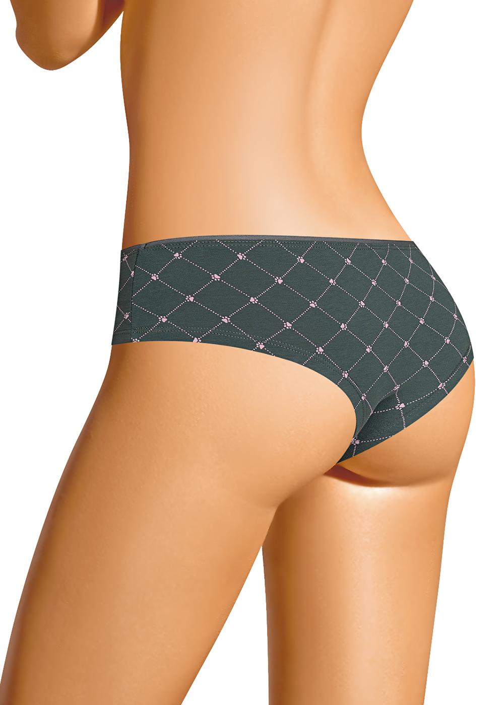 Трусы бразилиана женские из эластичного хлопкового полотна. Обработка краев по талии - резинка с кантом, по ноге - подгибка. Спереди термопленка.
