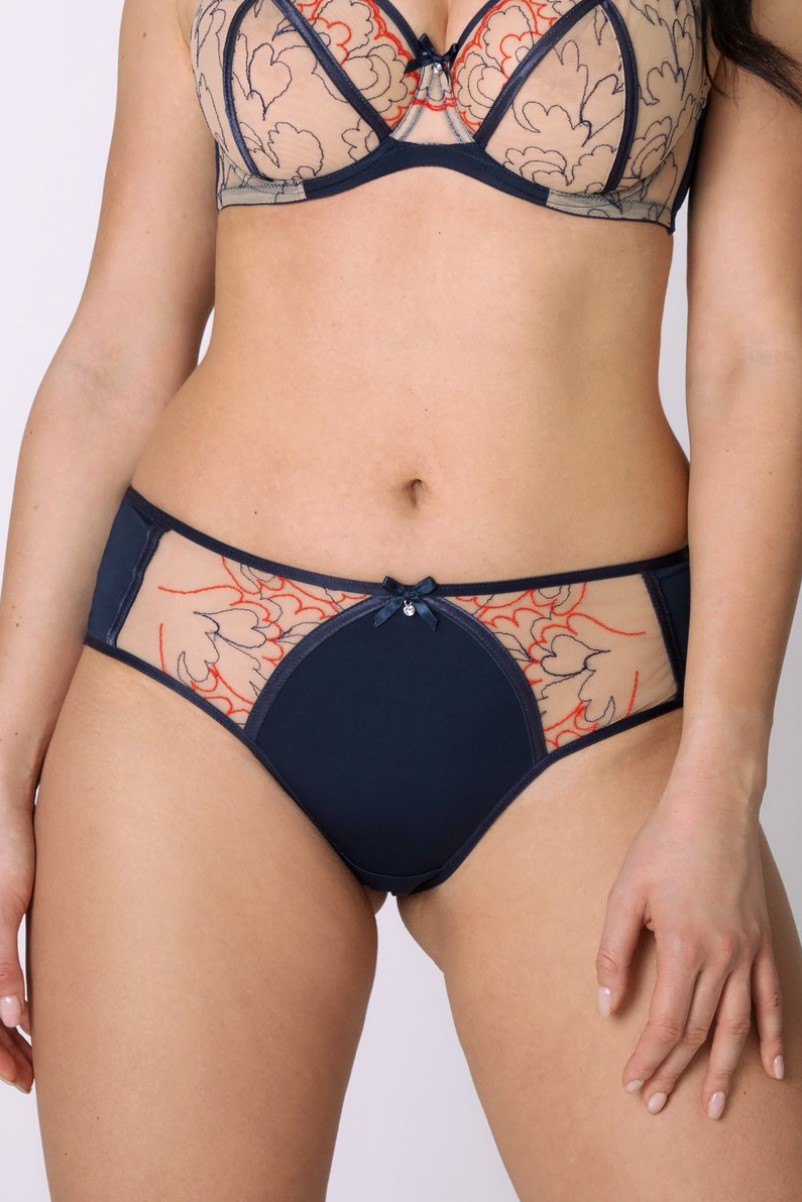 Трусы бразильяно LAILA от европейского производителя Subtille. Спереди модель выполнена из тюля с вышивкой и гладкой микрофибры, сзади из двойного тюля. Хлопковая ластовица.