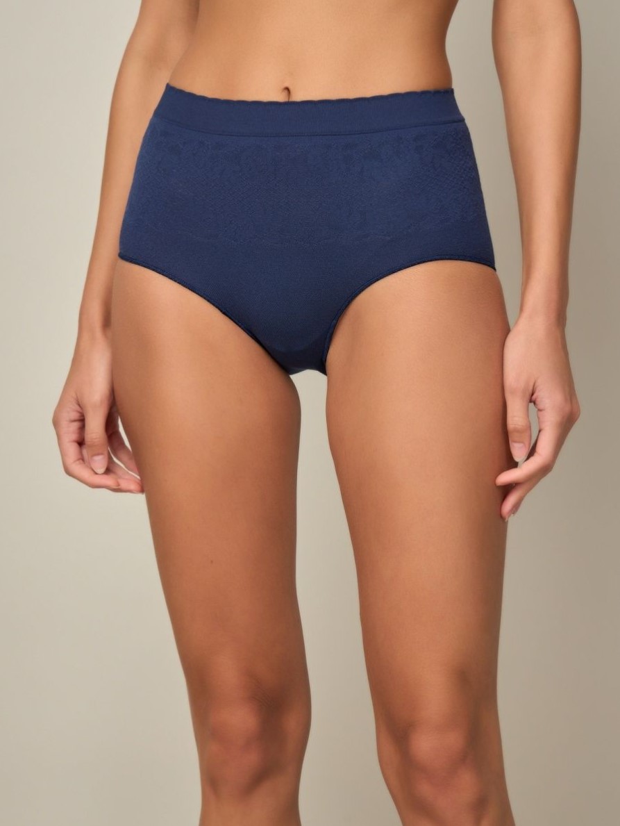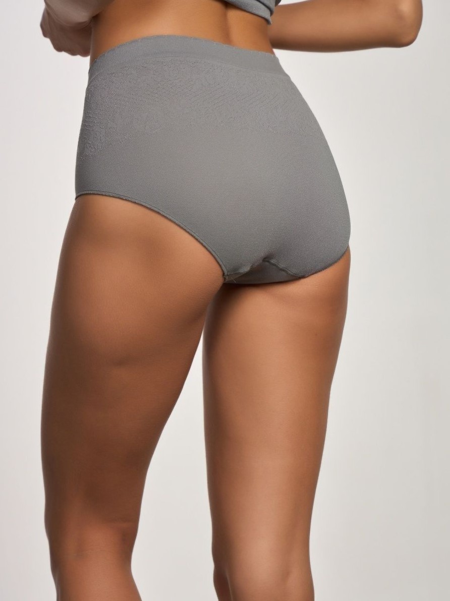 Трусики слипы бесшовные, однотонные, с антибактериальной ластовицей, с широким пояском и вставкой с эффектом кружева.