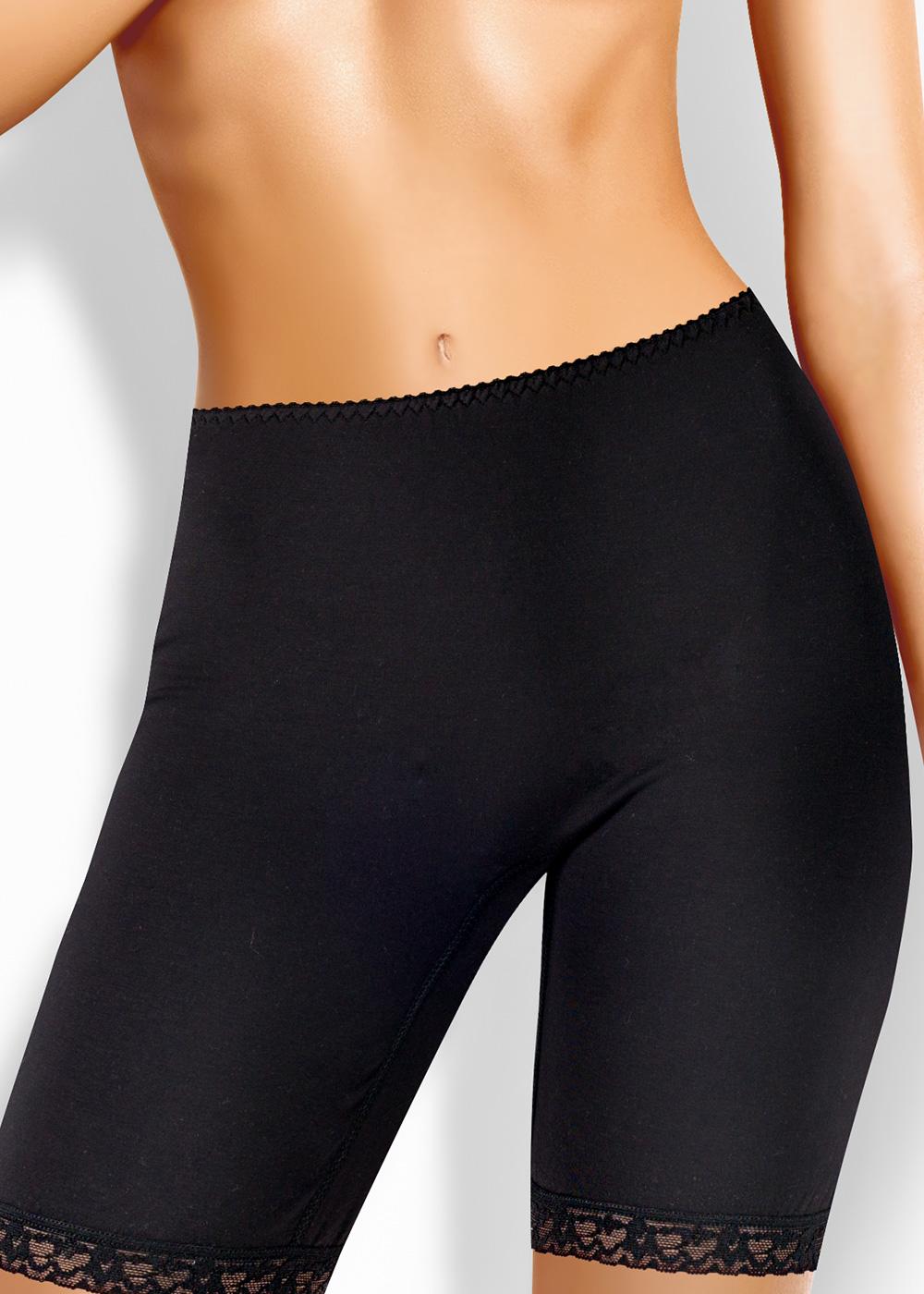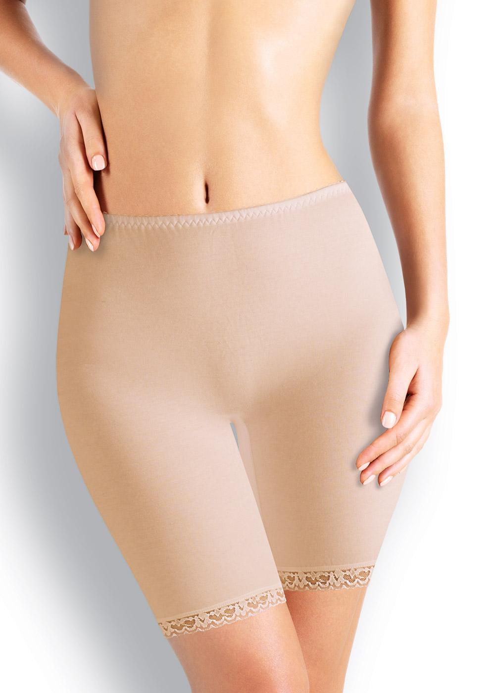 Трусы - панталоны на эластичном полотне с содержанием хлопка (кулирка). По талии резинка с фестоном. По ноге узкое кружево.