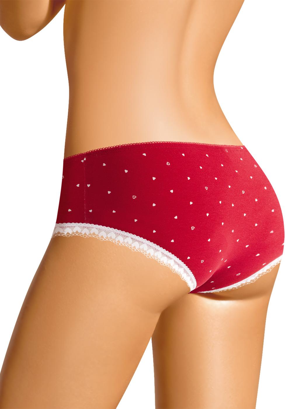 Трусы-шорты женские из эластичного хлопкового полотна. Обработка краев по талии - ажурная резинка, по ноге - узкое кружево. По переду бант.