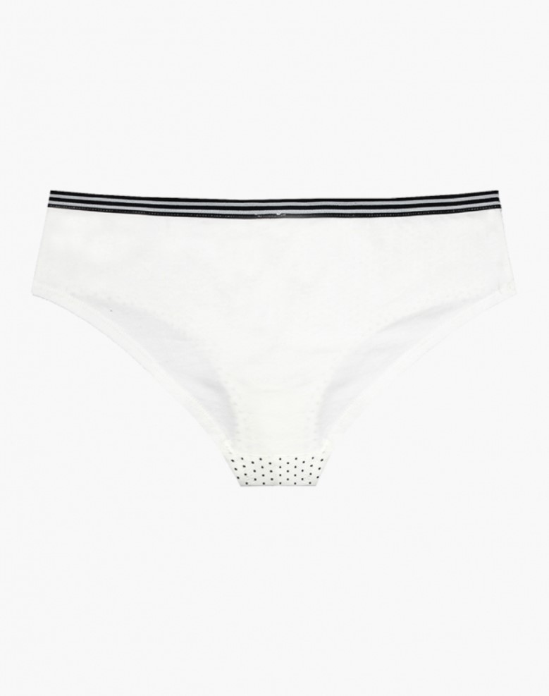 Женские трусы от торговой марки Индефини. Трусы-шорты из хлопка, белого цвета, с принтом в горошек и с принтом-надписями спереди, на мягкой резинке.