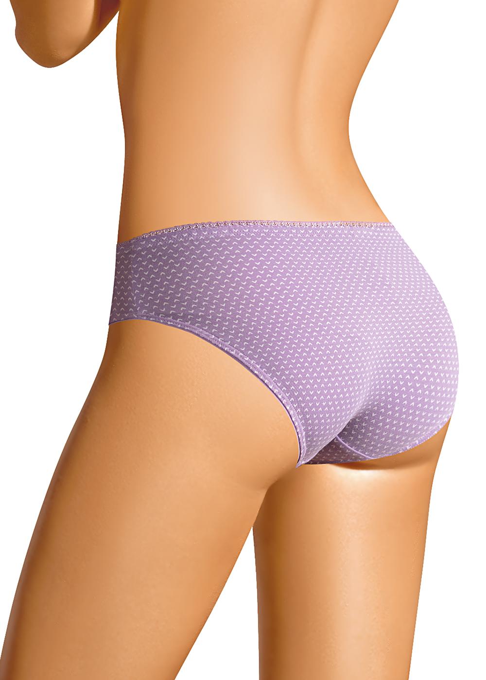 Трусы-слипы женские из эластичного хлопкового полотна. Обработка краев по талии - резинка с фестоном, по ноге окантовка. По переду бант.