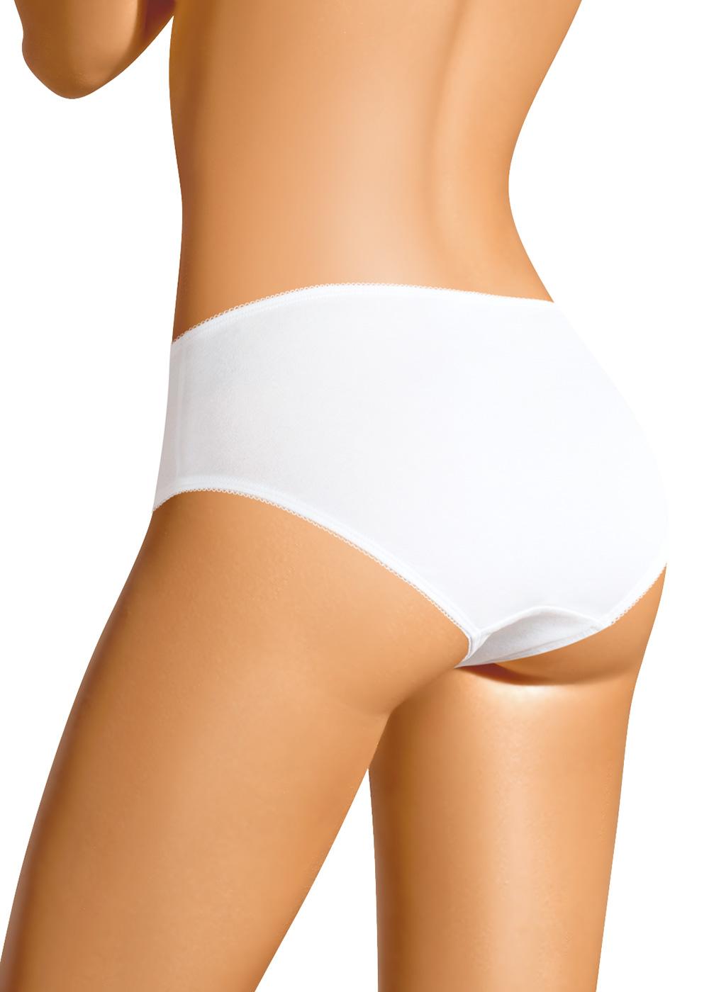 Трусы-слипы женские из эластичного хлопкового полотна. Обработка краев - ажурная резинка с фестоном. По переду вставка из кружева.
