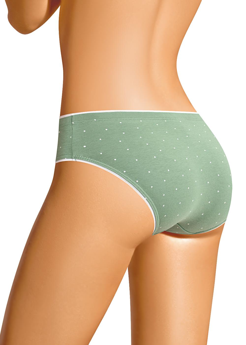Трусы слипы женские из плотного эластичного хлопкового полотна. Обработка краев по талии - резинка с кантом, по ноге - окантовка. По переду принт и атласный бант.