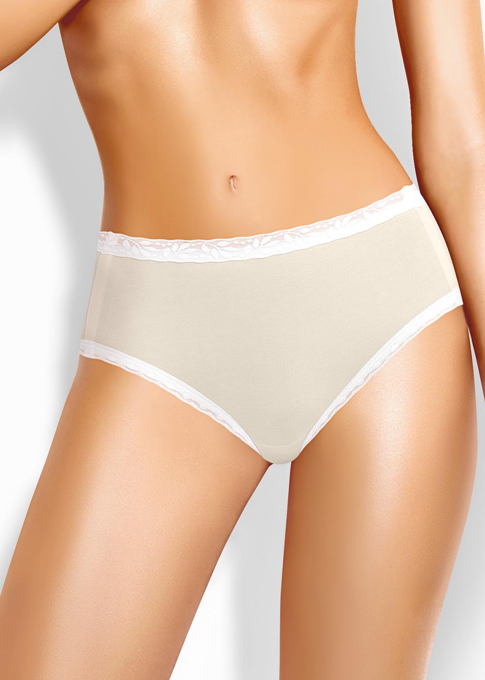 Трусы-слипы с завышенной посадкой из плотного эластичного материал, по ножке и по талии кружево, по всем швам изделия выполнена клеевая обработка.