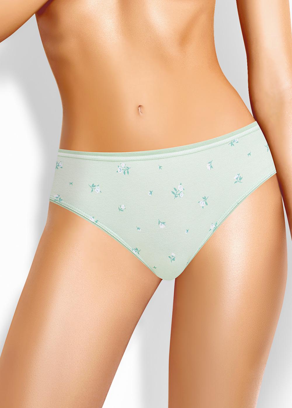 Трусы слипы женские из эластичного хлопкового полотна. Обработка краев по талии - окантовочная резинка с застилом, по ноге - полуокантовка. .