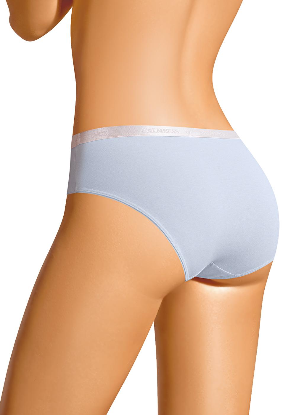 Трусы слипы-танга женские из эластичного хлопкового полотна. Обработка краев по талии - жаккардовая резинка, по ноге - полуокантовка.
